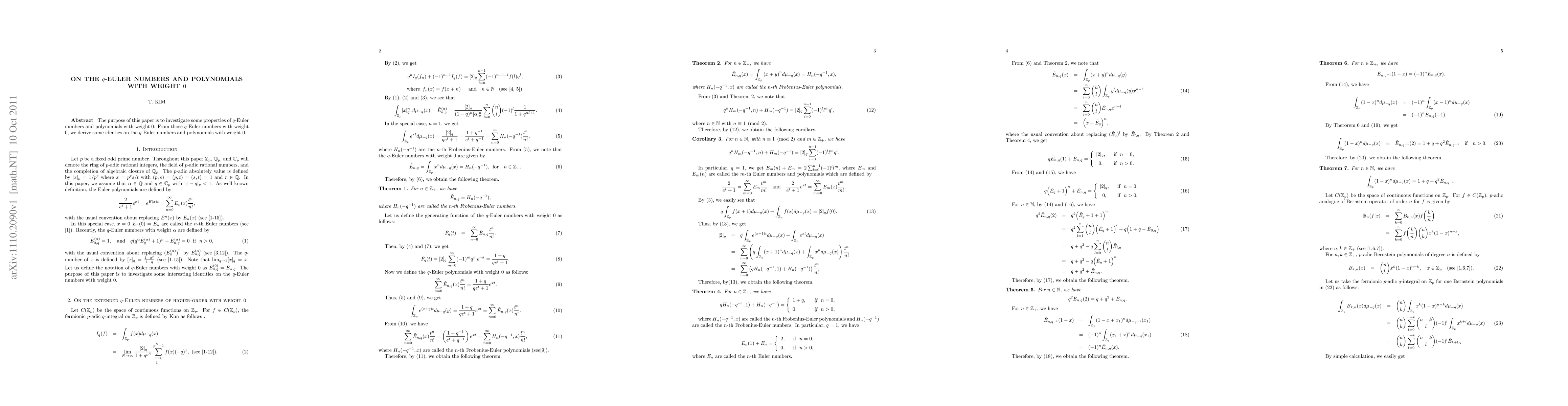 This paper explores properties of q-Euler numbers and polynomials with weight 0, deriving new identities related to these mathematical constructs. The findings contribute to the understanding of these specialized number sequences.