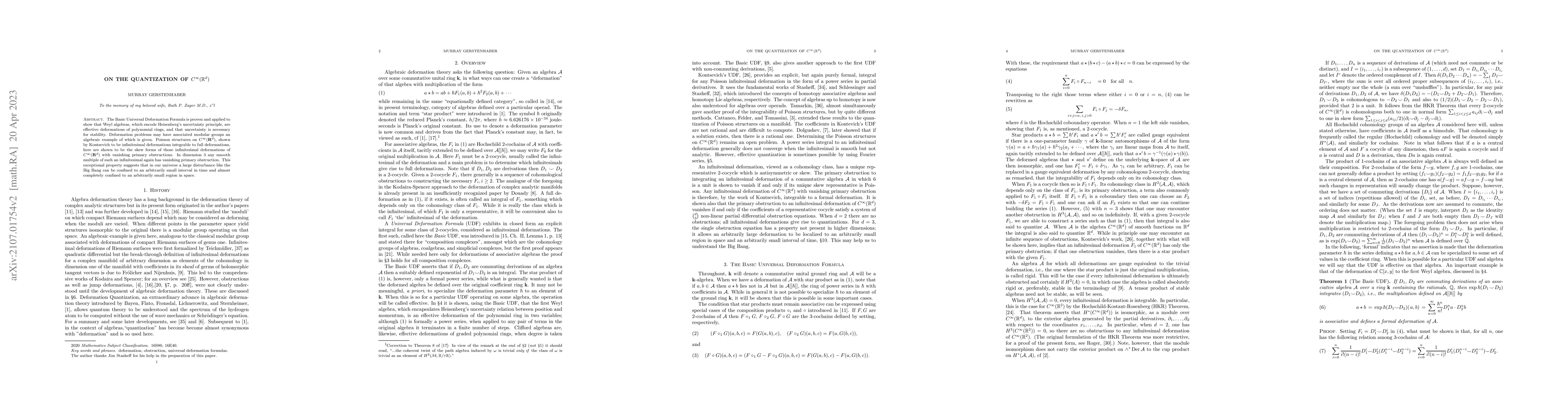 The paper proves the Basic Universal Deformation Formula and demonstrates that Weyl algebras are effective deformations of polynomial rings, emphasizing the necessity of uncertainty for stability. It also explores Poisson structures on $C^{\infty}(\mathbf R^d)$ as infinitesimal deformations, suggesting that in our universe, large disturbances can be confined to small intervals in time and space.