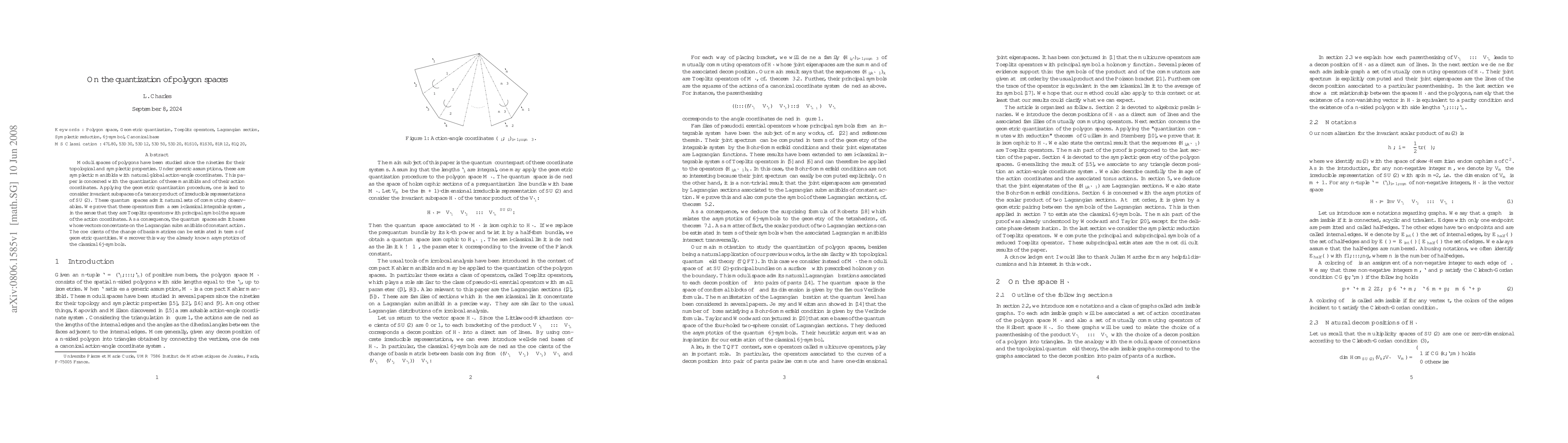 Moduli spaces of polygons have been studied since the nineties for their topological and symplectic properties. Under generic assumptions, these are symplectic manifolds with natural global action-angle coordinates. This paper is concerned with the quantization of these manifolds and of their action coordinates. Applying the geometric quantization procedure, one is lead to consider invariant subspaces of a tensor product of irreducible representations of SU(2). These quantum spaces admit natural sets of commuting observables. We prove that these operators form a semi-classical integrable system, in the sense that they are Toeplitz operators with principal symbol the square of the action coordinates. As a consequence, the quantum spaces admit bases whose vectors concentrate on the Lagrangian submanifolds of constant action. The coefficients of the change of basis matrices can be estimated in terms of geometric quantities. We recover this way the already known asymptotics of the classical 6j-symbols.