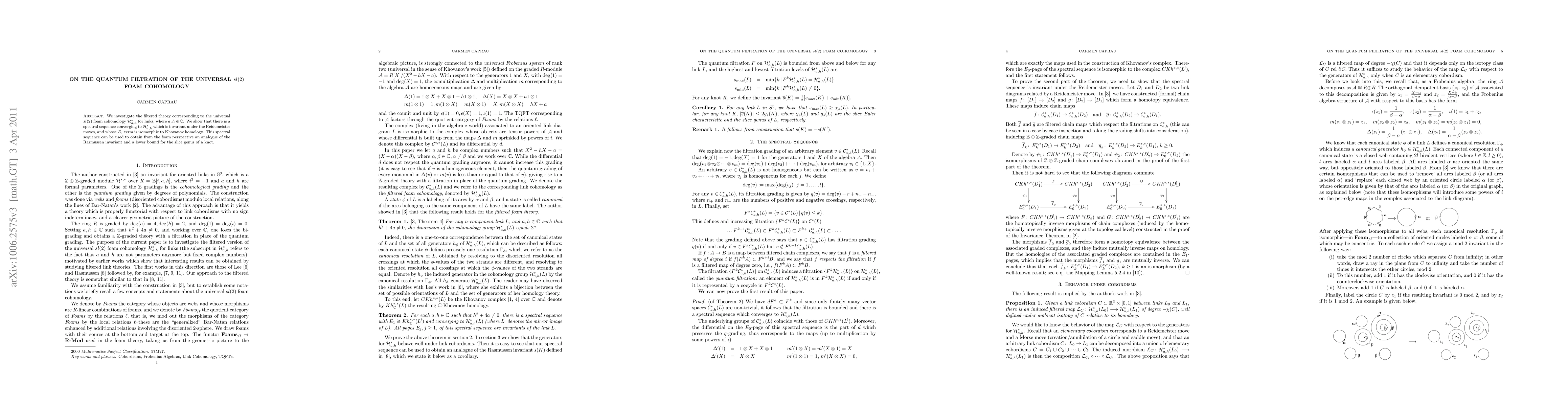 Summary: This paper studies the filtered theory of universal sl(2) foam cohomology for links, revealing a spectral sequence converging to $H_{a,h}$ invariant under Reidemeister moves, whose E1 term matches Khovanov homology, providing a foam-based analogue of Rasmussen invariant and a slice genus lower bound.