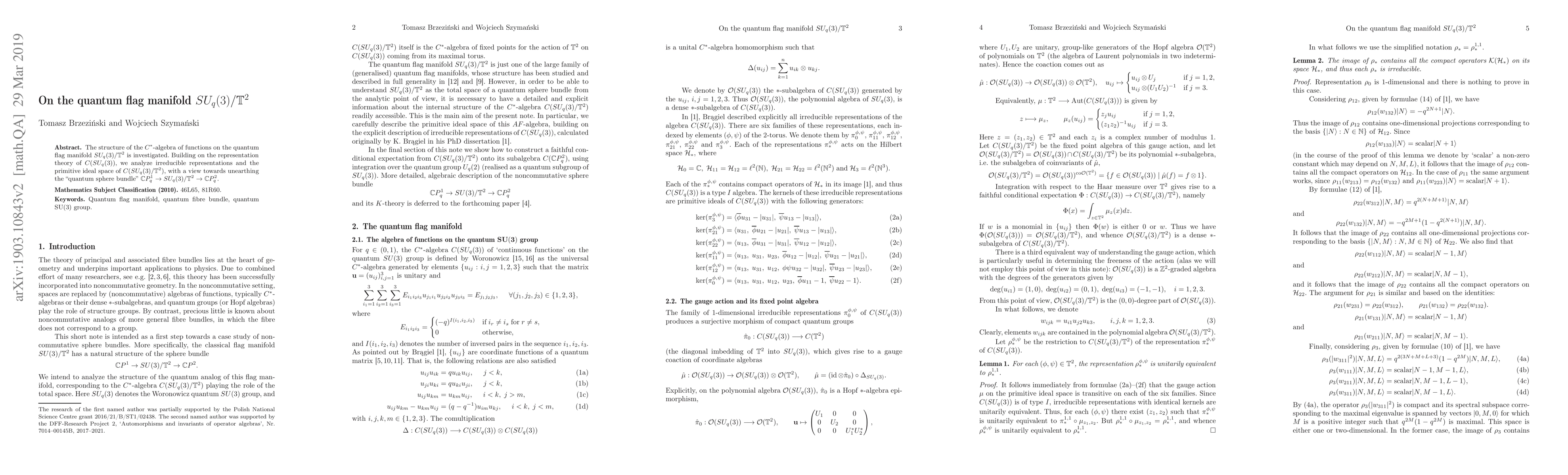 The paper investigates the $C^*$-algebra of functions on the quantum flag manifold $SU_q(3)/\mathbb{T}^2$, analyzing its irreducible representations and primitive ideal space to uncover the quantum sphere bundle $\mathbb{C} P_q^1 \to SU_q(3)/\mathbb{T}^2 \to \mathbb{C} P_q^2$.