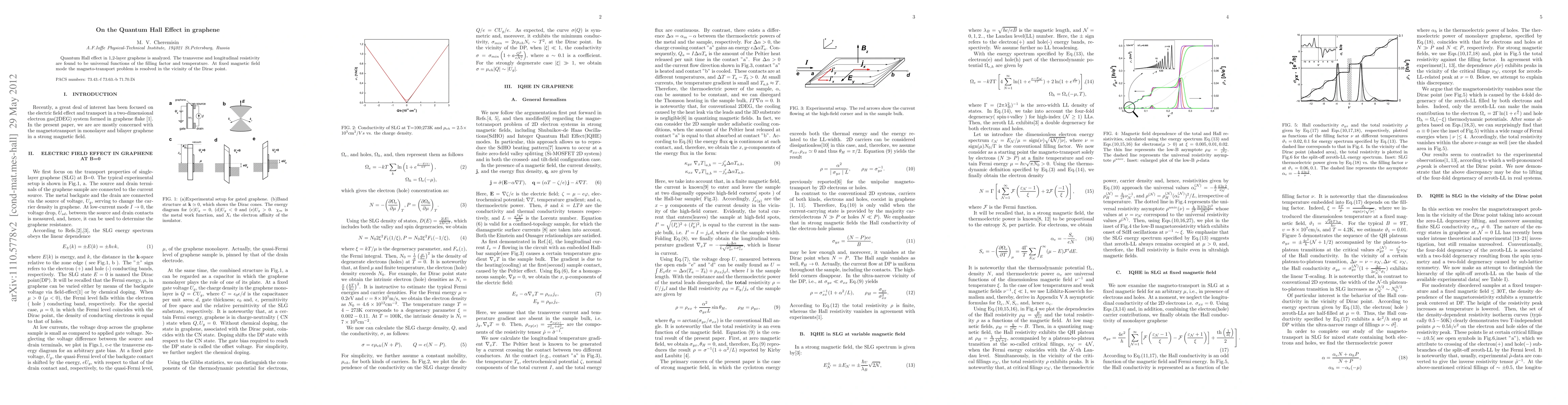Summary: This study analyzes the Quantum Hall effect in graphene, revealing that transverse and longitudinal resistivity are universal functions of filling factor and temperature, with specific insights into magneto-transport behavior near the Dirac point under fixed magnetic fields.