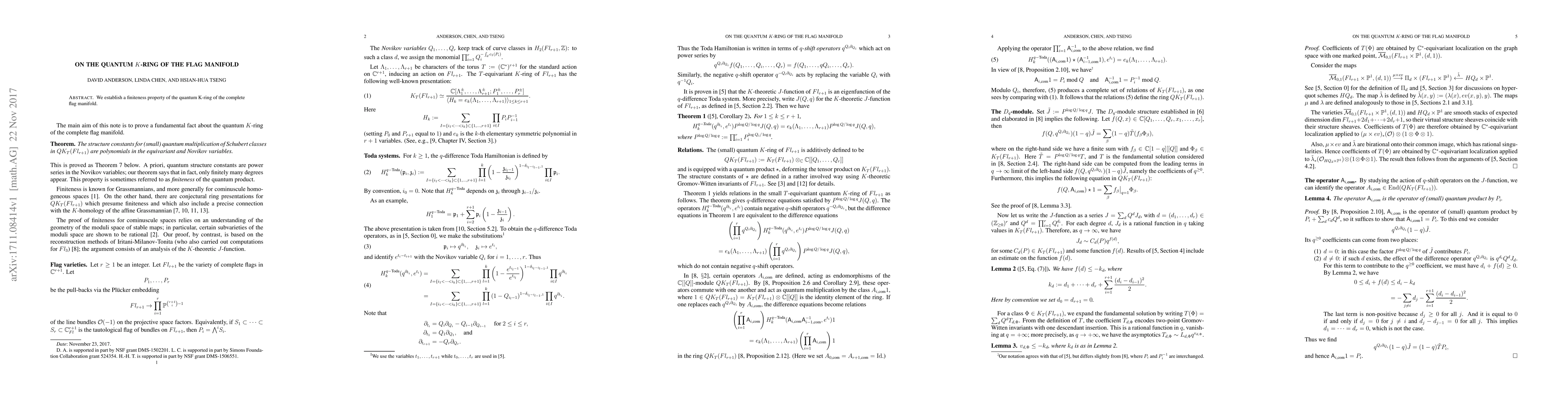 We establish a finiteness property of the quantum K-ring of the complete flag manifold.