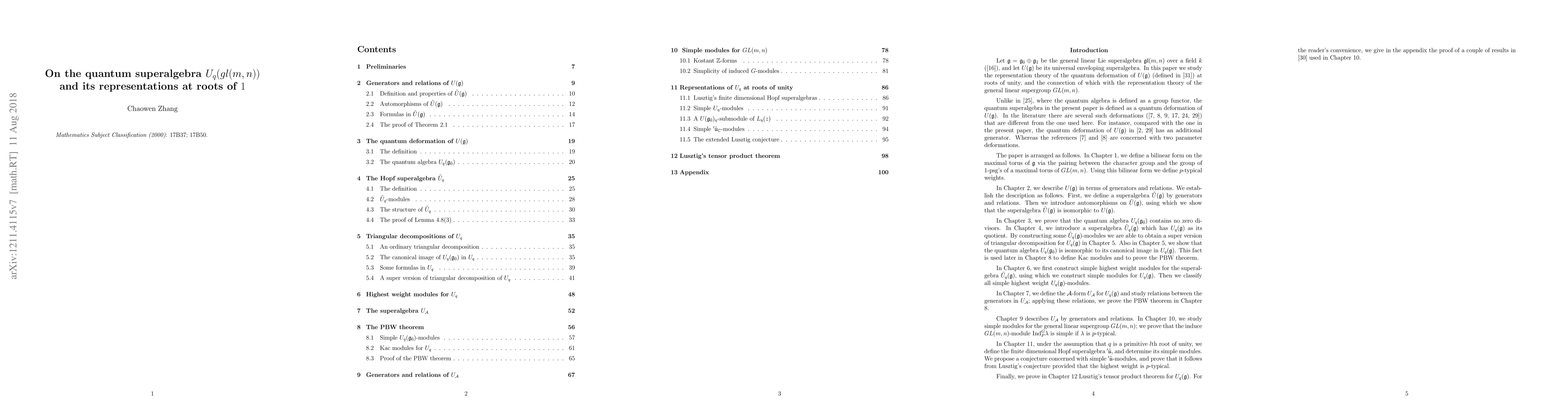 This paper presents an algebraic proof of the PBW theorem for quantum superalgebra U_q(gl(m,n)), extends Lusztig's conjecture to the super case, and establishes Lusztig's tensor product theorem.