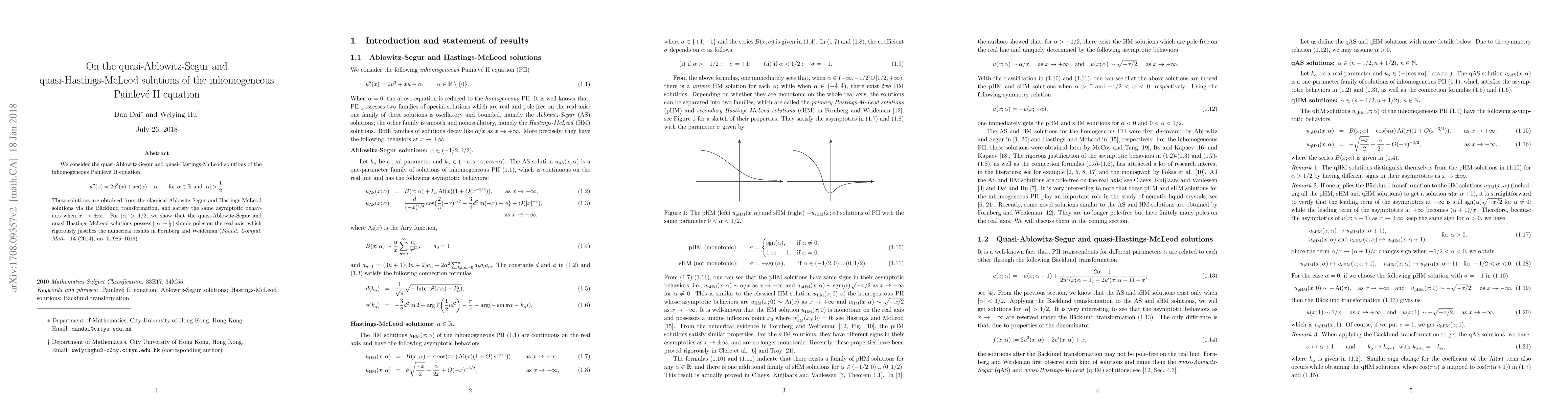 This paper investigates quasi-Ablowitz-Segur and quasi-Hastings-McLeod solutions of the inhomogeneous Painlevé II equation, derived from classical solutions via Bäcklund transformation. It confirms the asymptotic behaviors and shows that these solutions possess $[\,|\alpha| + \frac{1}{2}\,]$ simple poles for $|\alpha| > 1/2$, validating previous numerical findings.