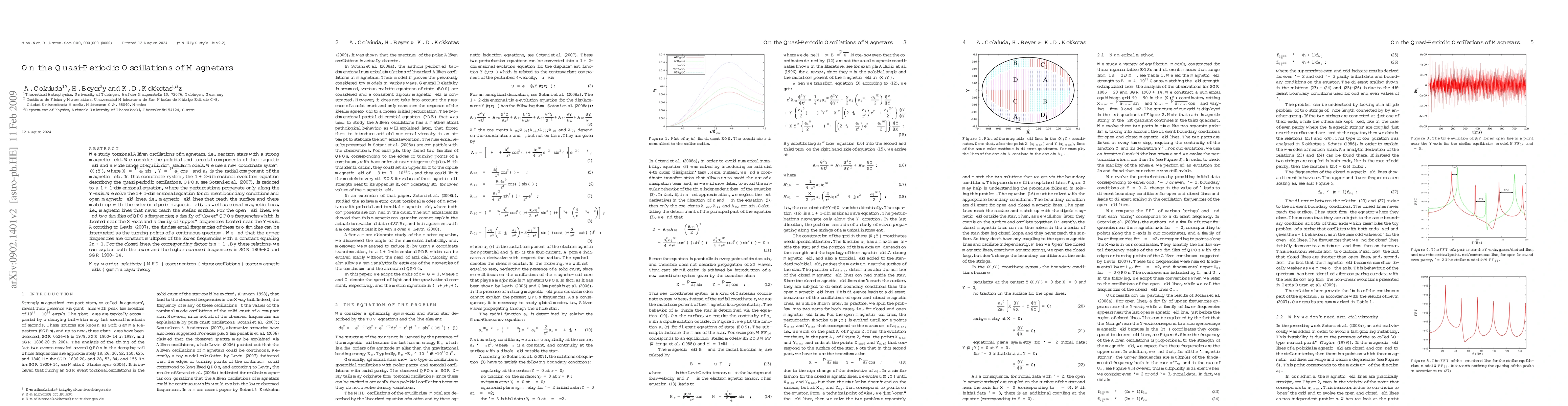 We study torsional Alfv\'en oscillations of magnetars, i.e., neutron stars with a strong magnetic field. We consider the poloidal and toroidal components of the magnetic field and a wide range of equilibrium stellar models. We use a new coordinate system (X,Y), where $X=\sqrt{a_1} \sin \theta$, $Y=\sqrt{a_1}\cos \theta$ and $a_1$ is the radial component of the magnetic field. In this coordinate system, the 1+2-dimensional evolution equation describing the quasi-periodic oscillations, QPOs, see Sotani et al. (2007), is reduced to a 1+1-dimensional equation, where the perturbations propagate only along the Y-axis. We solve the 1+1-dimensional equation for different boundary conditions and open magnetic field lines, i.e., magnetic field lines that reach the surface and there match up with the exterior dipole magnetic field, as well as closed magnetic lines, i.e., magnetic lines that never reach the stellar surface. For the open field lines, we find two families of QPOs frequencies; a family of "lower" QPOs frequencies which is located near the X-axis and a family of "upper" frequencies located near the Y-axis. According to Levin (2007), the fundamental frequencies of these two families can be interpreted as the turning points of a continuous spectrum. We find that the upper frequencies are constant multiples of the lower frequencies with a constant equaling 2n+1. For the closed lines, the corresponding factor is n+1 . By these relations, we can explain both the lower and the higher observed frequencies in SGR 1806-20 and SGR 1900+14.