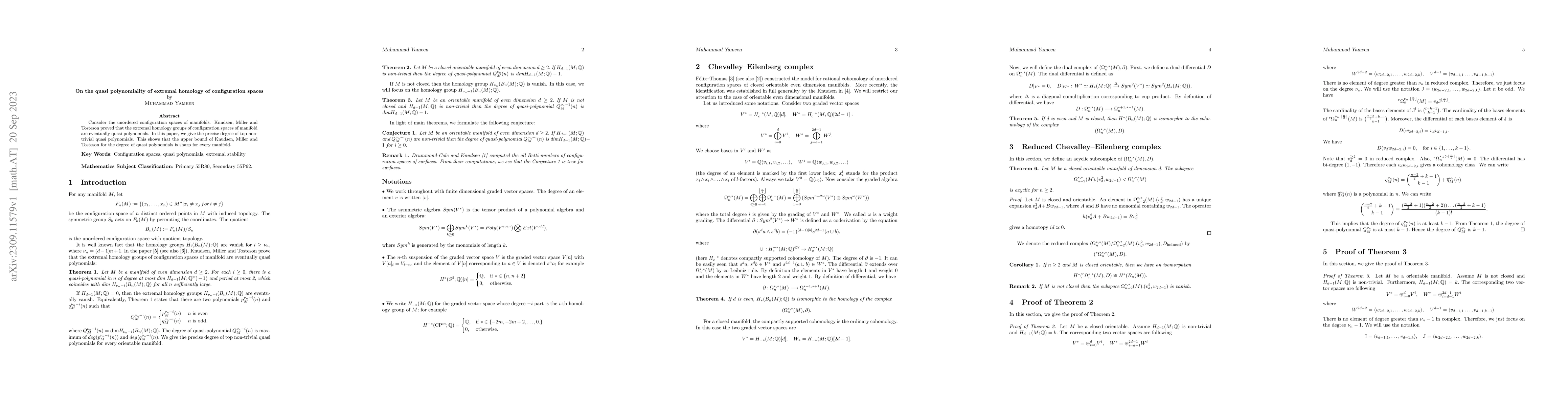 Consider the unordered configuration spaces of manifolds. Knudsen, Miller and Tosteson proved that the extremal homology groups of configuration spaces of manifold are eventually quasi polynomials. In this paper, we give the precise degree of top non-trivial quasi polynomials. This shows that the upper bound of Knudsen, Miller and Tosteson for the degree of quasi polynomials is sharp for every manifold.
