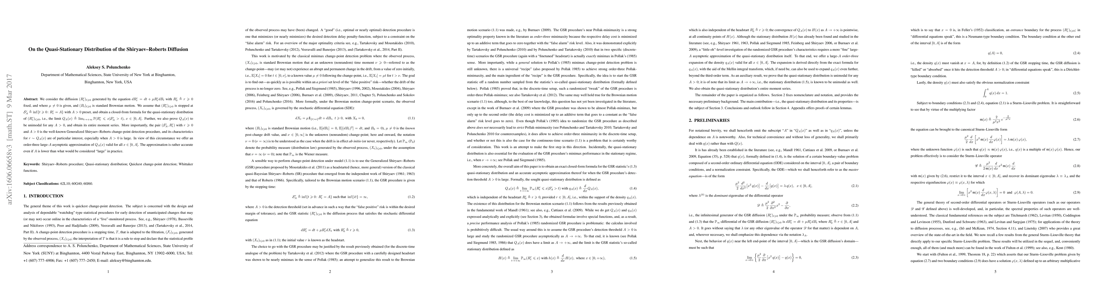 The paper derives a closed-form formula for the quasi-stationary distribution of the Shiryaev-Roberts diffusion, providing insights into its characteristics, including unimodality and moment series, with implications for change-point detection procedures.