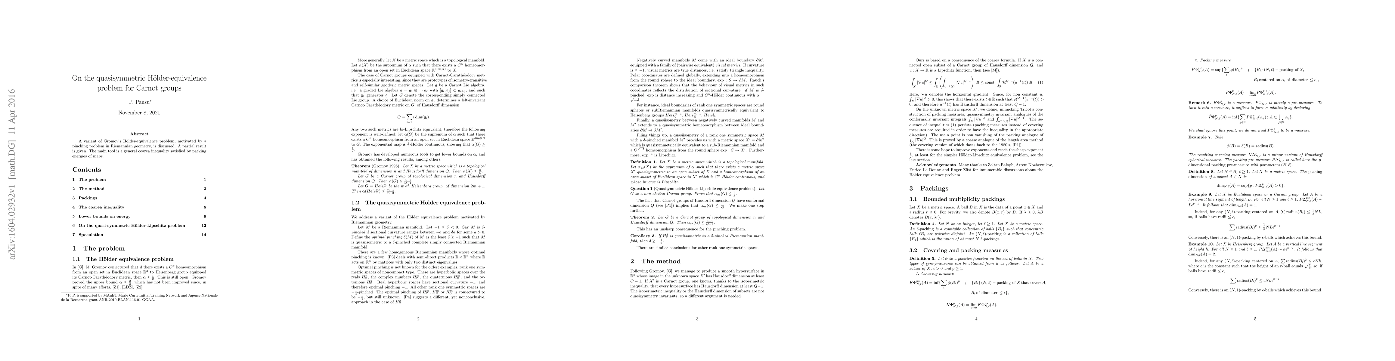 This paper investigates a variant of Gromov's H"older-equivalence problem for Carnot groups, focusing on a partial result that relies on a general coarea inequality for packing energies of maps.