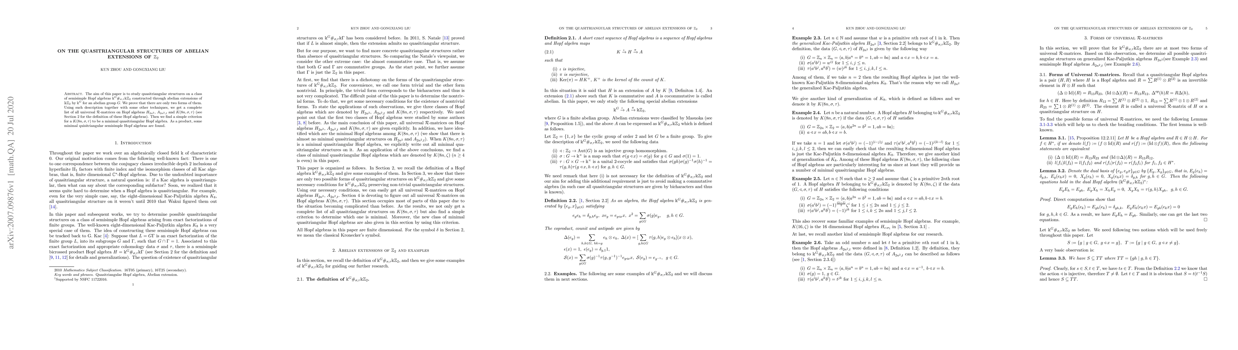 The aim of this paper is to study quasitriangular structures on a class of semisimple Hopf algebras constructed through abelian extensions of $Z_2$ for an abelian group $G$. We prove that there are only two forms of them. Using such description together with some other techniques, we get a complete list of all universal $\mathcal{R}$-matrices on some Hopf algebras.