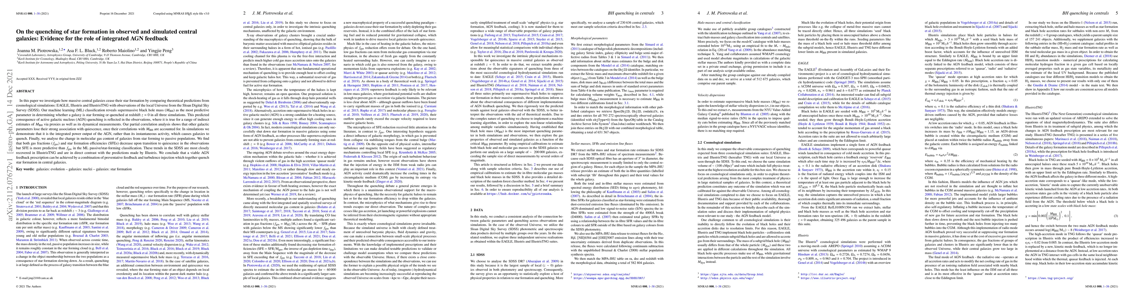 This paper investigates the cessation of star formation in central galaxies using simulations and local Universe observations, finding that supermassive black hole mass is a key predictor. It concludes that integrated AGN feedback, rather than instantaneous activity, is responsible for quenching star formation, with IllustrisTNG simulations most accurately reflecting these trends.