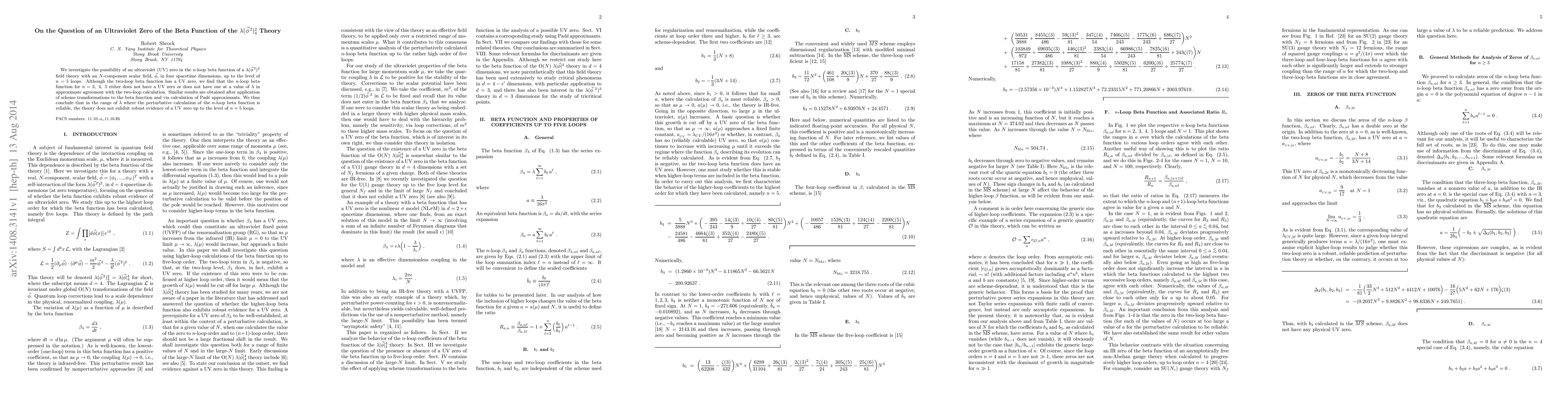 We investigate the possibility of an ultraviolet (UV) zero in the $n$-loop beta function of a $\lambda (\vec{\phi}^2)^2$ field theory with an $N$-component scalar field, $\vec{\phi}$, in four spacetime dimensions, up to the level of $n=5$ loops. Although the two-loop beta function has a UV zero, we find that the $n$-loop beta function for $n=3, \ 4, \ 5$ either does not have a UV zero or does not have one at a value of $\lambda$ in approximate agreement with the two-loop calculation. Similar results are obtained after application of scheme transformations to the beta function and via calculation of Pad\'e approximants. We thus conclude that in the range of $\lambda$ where the perturbative calculation of the $n$-loop beta function is reliable, the theory does not exhibit robust evidence of a UV zero up to the level of $n=5$ loops.