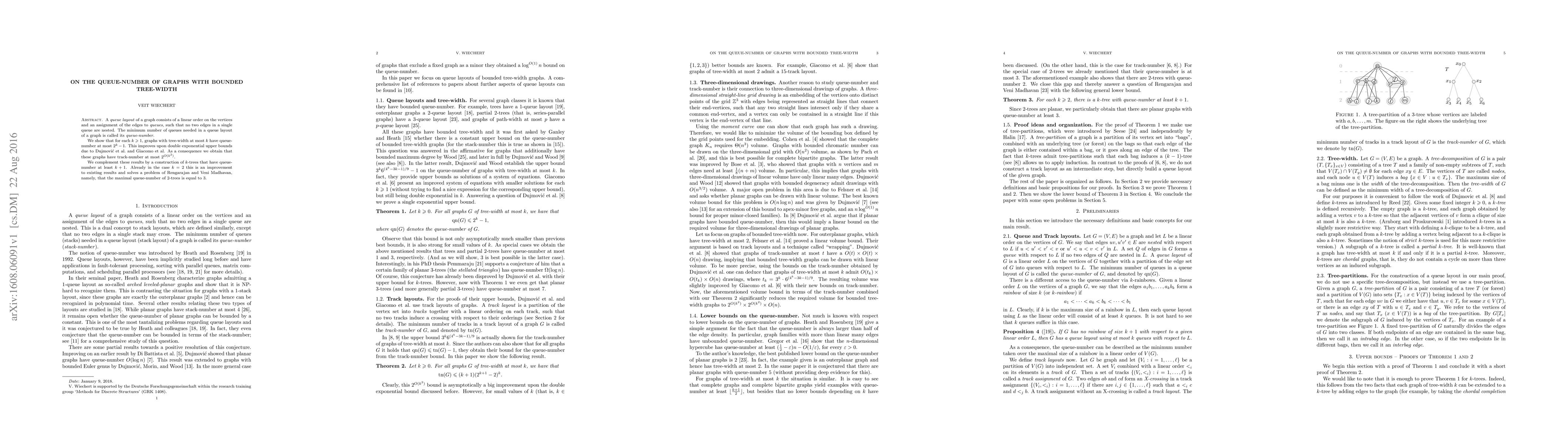 This paper demonstrates that graphs with tree-width at most $k$ have a queue-number of at most $2^k-1$, significantly improving previous double exponential bounds. It also constructs $k$-trees with a queue-number of at least $k+1$, resolving the maximal queue-number of $2$-trees as $3$.