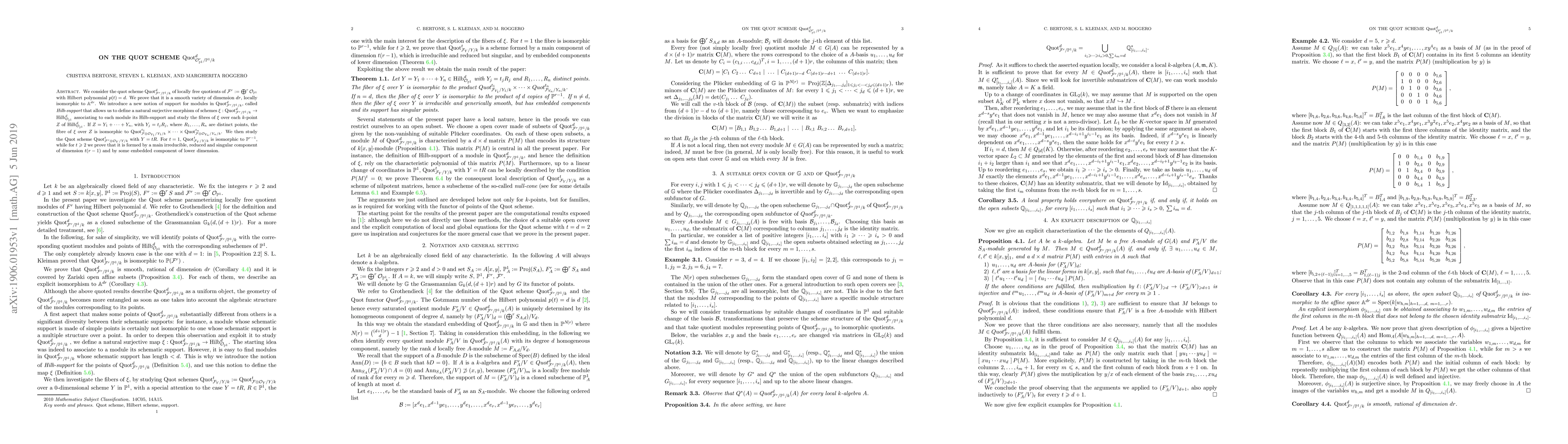 This paper studies the Quot scheme $\mathrm{Quot}^d_{\mathcal F^r/ \mathbb P^1/ k}$ for locally free quotients of $\mathcal F^r$ with a specific Hilbert polynomial. It proves the scheme is smooth, locally isomorphic to $\mathbb A^{dr}$, and introduces a new Hilb-support notion. The paper also defines a morphism $\xi$ linking this scheme to $\mathrm{Hilb}^d_{\mathcal O_{\mathbb P^1}}$ and analyzes the structure of its fibers, revealing intricate connections between different components for varying $t$.