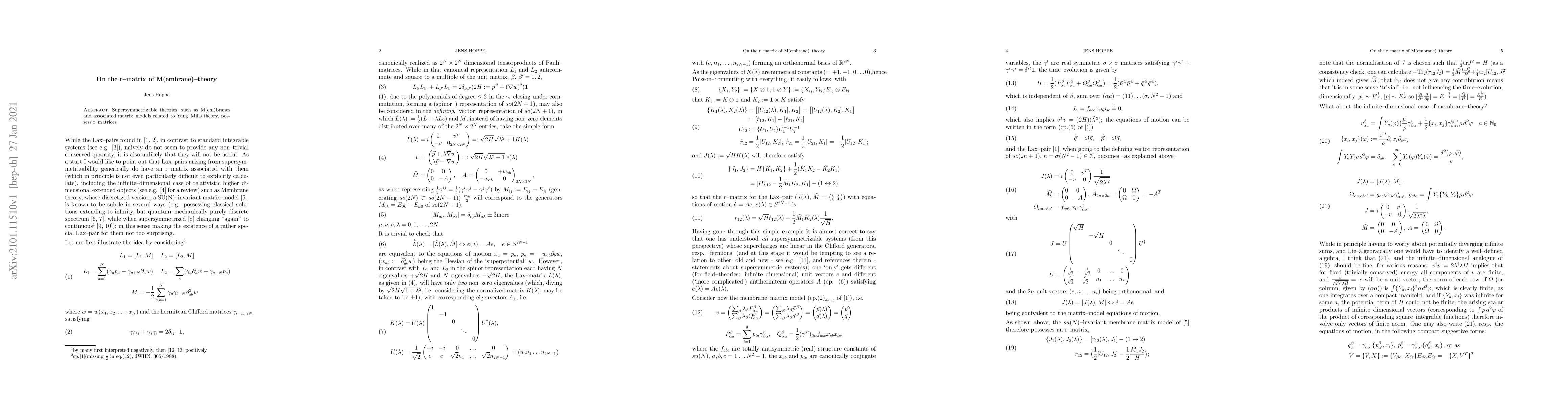 The paper explores supersymmetrizable theories, such as M-branes and associated matrix models related to Yang-Mills theory, focusing on their r-matrices. It demonstrates how Lax pairs can be constructed for these systems, using a simple example to illustrate the underlying principles.