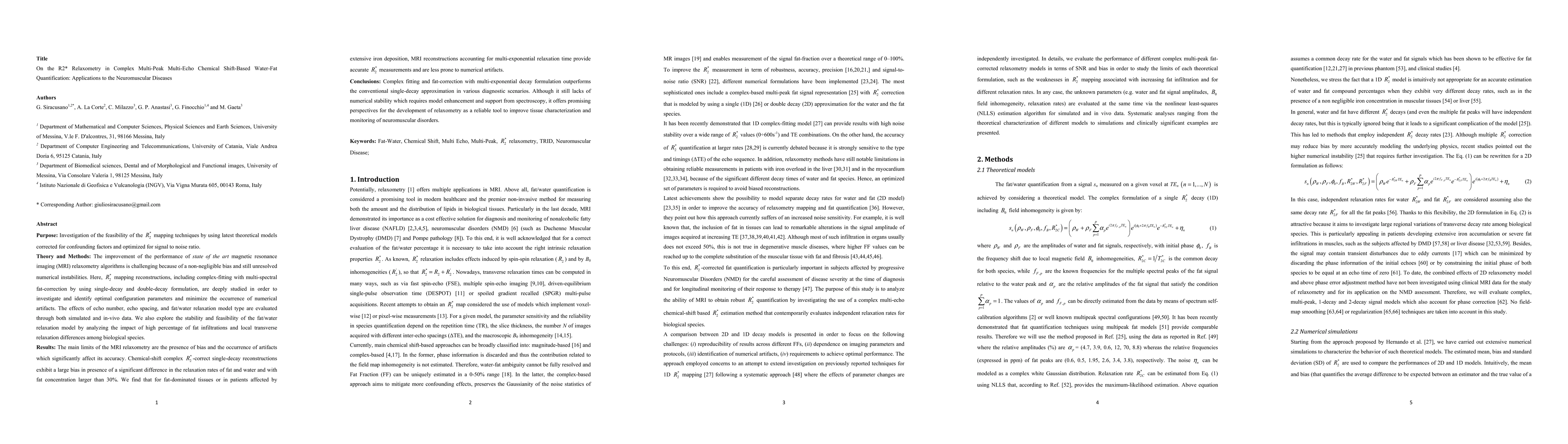 Purpose: Investigation of the feasibility of the R2* mapping techniques by using latest theoretical models corrected for confounding factors and optimized for signal to noise ratio. Theory and Methods: The improvement of the performance of state of the art MRI relaxometry algorithms is challenging because of a non-negligible bias and still unresolved numerical instabilities. Here, R2* mapping reconstructions, including complex-fitting with multi-spectral fat-correction by using single-decay (1D) and double-decay (2D) formulation, are studied in order to identify optimal configuration parameters and minimize numerical artifacts. The effects of echo number, echo spacing, and fat/water relaxation model are evaluated through simulated and in-vivo data. We also explore the stability of such models by analyzing the impact of high percentage of fat infiltrations and local transverse relaxation differences among biological species. Results: The main limits of the MRI relaxometry are the presence of bias and the occurrence of artifacts which affect its accuracy. Chemical-shift complex reconstructions R2*-corrected with 1D formulation exhibit a large bias in presence of a significant difference in the relaxation rates of fat and water and with fat concentration larger than 30%. We find that for fat-dominated tissues or in patients affected by iron overload, MRI reconstructions accounting for multi-exponential relaxation time provide accurate R2* measurements and are less prone to numerical artifacts. Conclusions: Complex fitting 2D formulation outperforms the conventional 1D approximation in various diagnostic scenarios. Although it still lacks of numerical stability which requires model enhancement and support from spectroscopy, it offers promising perspectives for the development of relaxometry as a reliable tool to improve tissue characterization and monitoring of neuromuscular disorders.