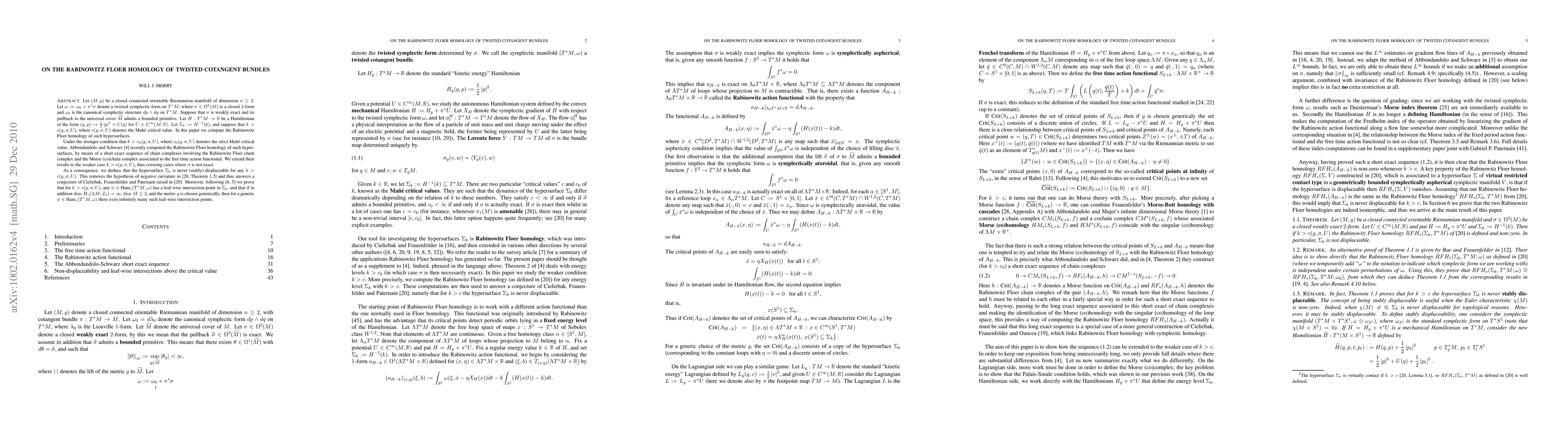 Consider the cotangent bundle of a Riemannian manifold $(M,g)$ of dimension 2 or more, endowed with a twisted symplectic structure defined by a closed weakly exact 2-form $\sigma$ on $M$ whose lift to the universal cover of $M$ admits a bounded primitive. We compute the Rabinowitz Floer homology of energy hypersurfaces $\Sigma_{k}=H^{-1}(k)$ of mechanical (kinetic energy + potential) Hamiltonians $H$ for the case when the energy value k is greater than the Mane critical value c. Under the stronger condition that k>c_{0}, where c_{0} denotes the strict Mane critical value, Abbondandolo and Schwarz recently computed the Rabinowitz Floer homology of such hypersurfaces, by means of a short exact sequence of chain complexes involving the Rabinowitz Floer chain complex and the Morse (co)chain complex associated to the free time action functional. We extend their results to the weaker case k>c, thus covering cases where $\sigma$ is not exact. As a consequence, we deduce that the hypersurface corresponding to the energy level k is never displaceable for any k>c. Moreover, we prove that if dim M > 1, the homology of the free loop space of $M$ is infinite dimensional, and if the metric is chosen generically, a generic Hamiltonian diffeomorphism has infinitely many leaf-wise intersection points in $\Sigma_{k}$.