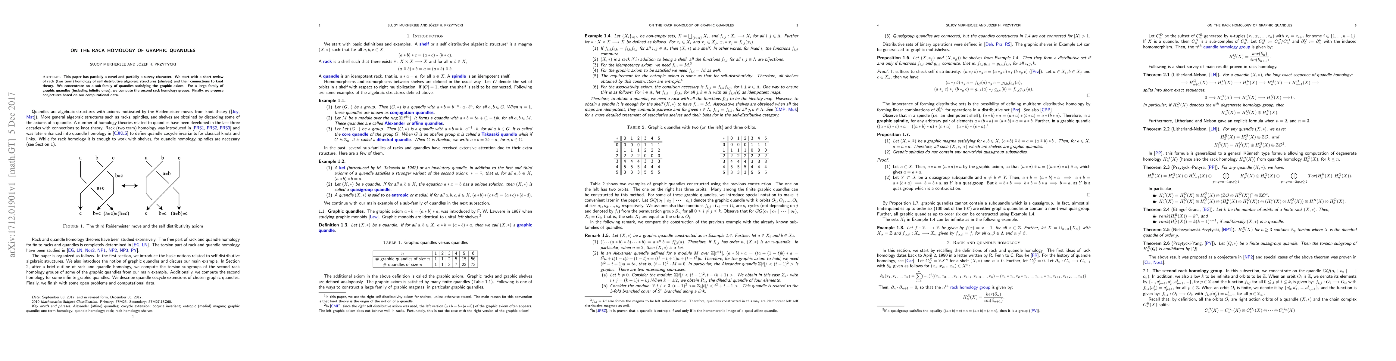 This paper reviews rack homology of self-distributive structures (shelves) and their links to knot theory, focusing on graphic quandles, where it computes the second rack homology for many instances and proposes related conjectures.