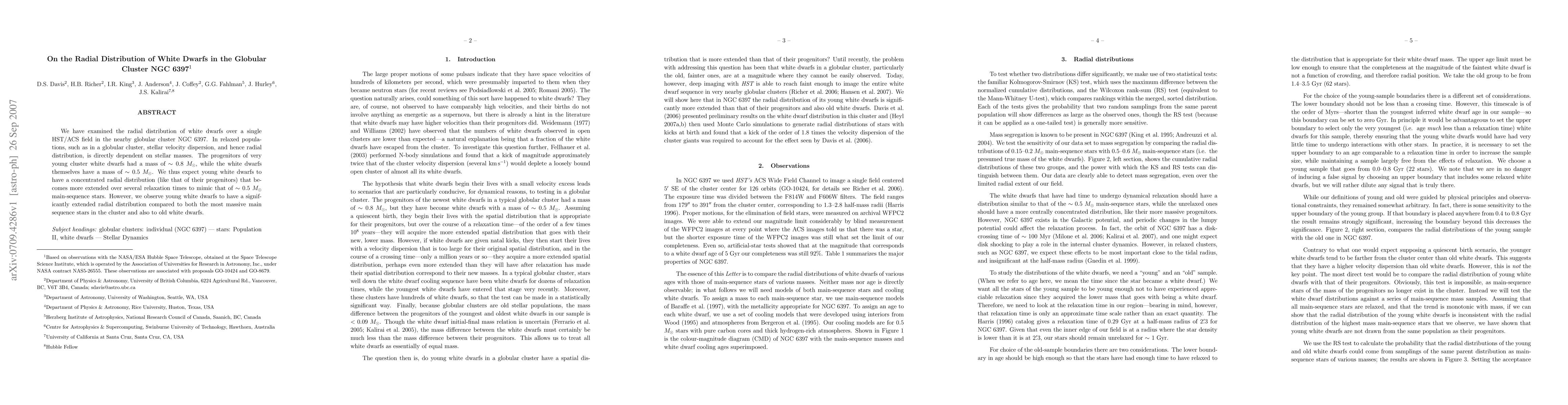 This study investigates the radial distribution of white dwarfs in the globular cluster NGC 6397 using HST/ACS data. Contrary to expectations, young white dwarfs exhibit a significantly extended radial distribution compared to both old white dwarfs and the most massive main-sequence stars in the cluster.