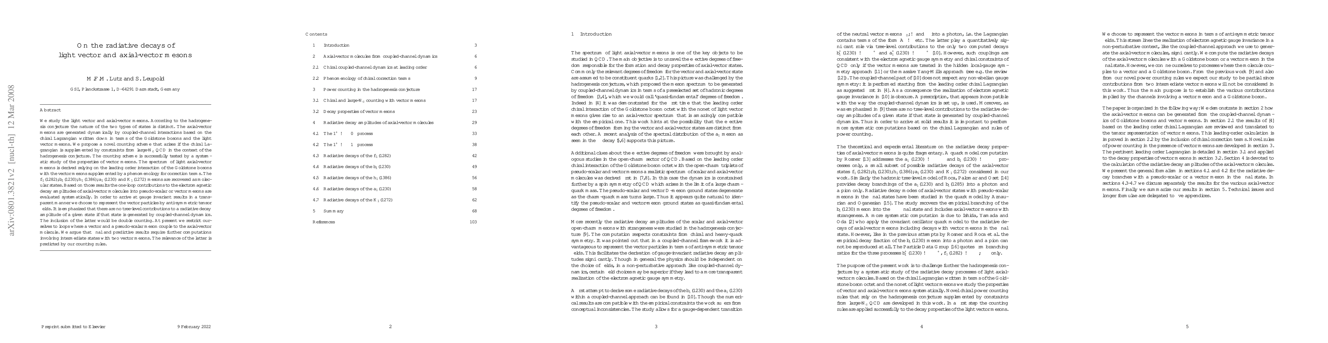 We study the light vector and axial-vector mesons. According to the hadrogenesis conjecture the nature of the two types of states is distinct. The axial-vector mesons are generated dynamically by coupled-channel interactions based on the chiral Lagrangian written down in terms of the Goldstone bosons and the light vector mesons. We propose a novel counting scheme that arises if the chiral Lagrangian is supplemented by constraints from large-N_c QCD in the context of the hadrogenesis conjecture. The counting scheme is successfully tested by a systematic study of the properties of vector mesons. The spectrum of light axial-vector mesons is derived relying on the leading order interaction of the Goldstone bosons with the vector mesons supplemented by a phenomenology for correction terms. The f_1(1282), b_1(1230), h_1(1386), a_1(1230) and K_1(1272) mesons are recovered as molecular states. Based on those results the one-loop contributions to the electromagnetic decay amplitudes of axial-vector molecules into pseudo-scalar or vector mesons are evaluated systematically. In order to arrive at gauge invariant results in a transparent manner we choose to represent the vector particles by anti-symmetric tensor fields. It is emphasized that there are no tree-level contributions to a radiative decay amplitude of a given state if that state is generated by coupled-channel dynamics. The inclusion of the latter would be double counting. At present we restrict ourselves to loops where a vector and a pseudo-scalar meson couple to the axial-vector molecule. We argue that final and predictive results require further computations involving intermediate states with two vector mesons. The relevance of the latter is predicted by our counting rules.