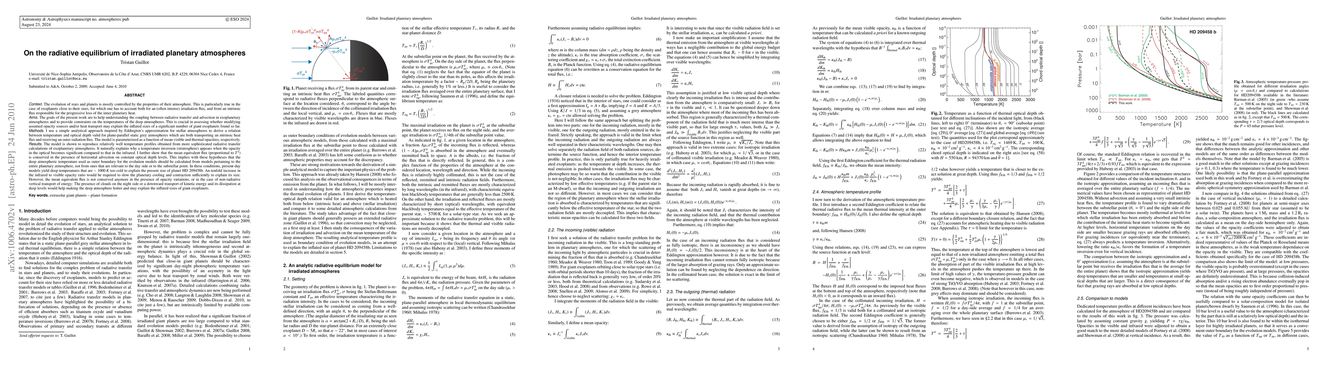 This paper explores the radiative equilibrium in exoplanetary atmospheres, focusing on the coupling between radiative transfer and advection. It proposes a simple analytical model to understand the temperature profiles and suggests that current models underestimate deep atmospheric temperatures, potentially explaining the inflated sizes of some giant exoplanets. The study indicates that increased infrared opacity or non-radiative energy transport could resolve this discrepancy.
