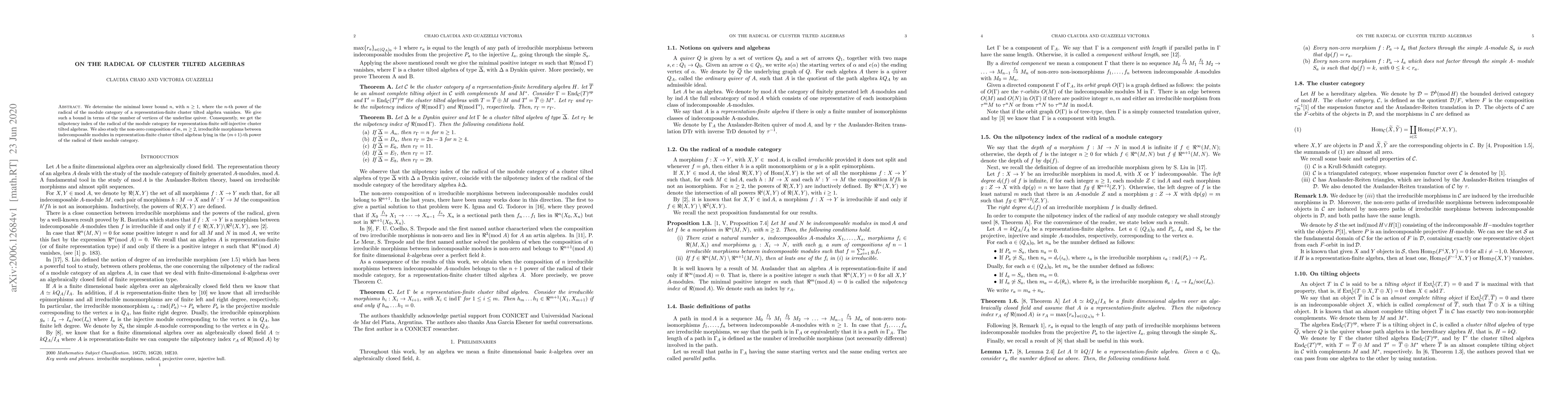 This paper provides the minimal lower bound for the vanishing of the radical's power in the module category of representation-finite cluster tilted algebras, expressed in terms of the quiver's vertex count. It also investigates the composition of irreducible morphisms within the radical's higher powers.