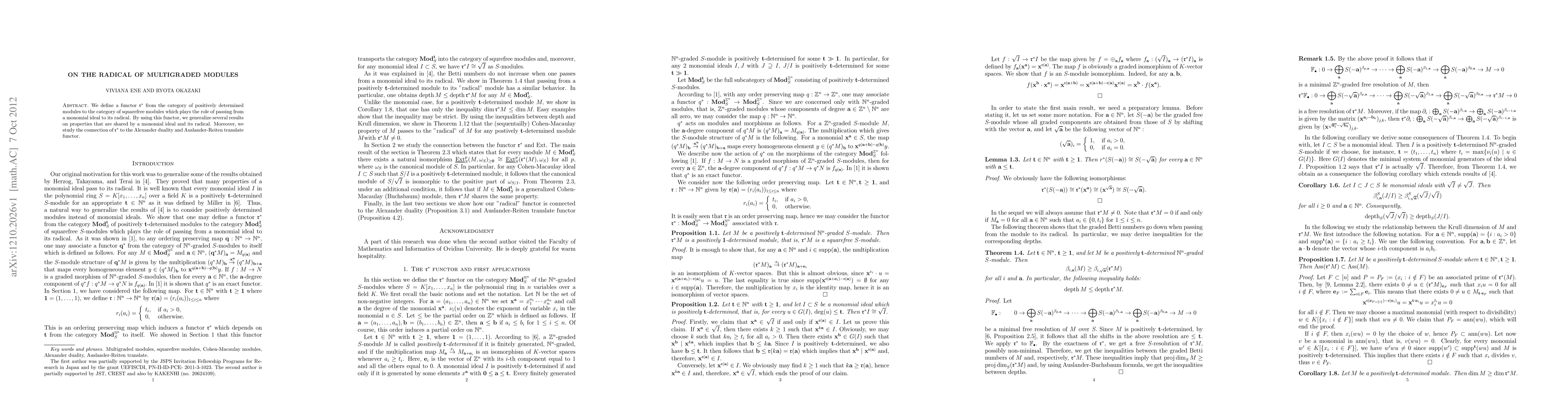 We define a functor $\rr^\ast$ from the category of positively determined modules to the category of squarefree modules which plays the role of passing from a monomial ideal to its radical. By using this functor, we generalize several results on properties that are shared by a monomial ideal and its radical. Moreover, we study the connection of $\rr^\ast$ to the Alexander duality and Auslander-Reiten translate functor.
