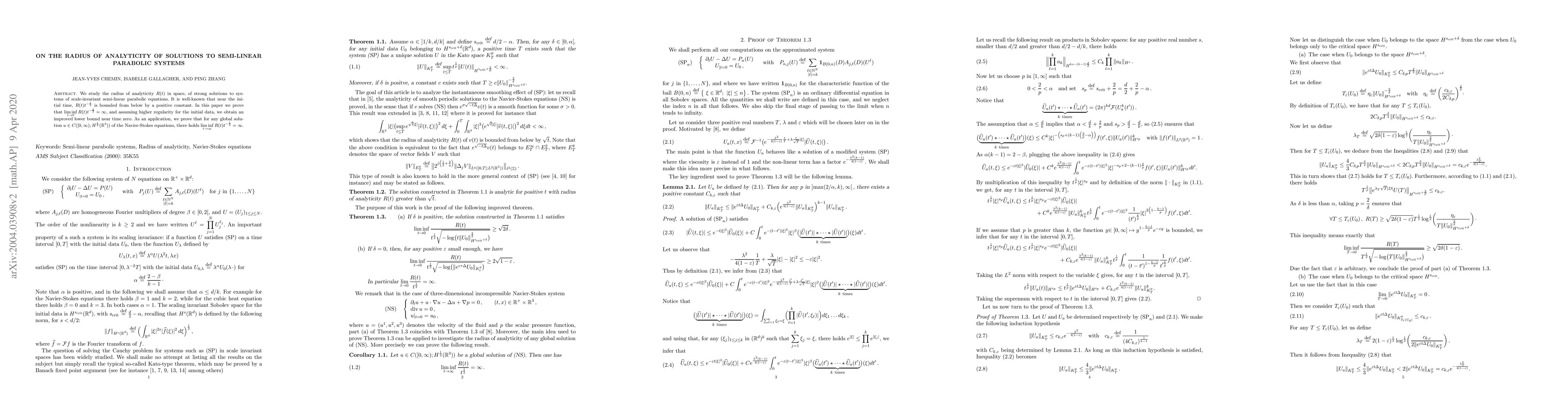 This paper investigates the radius of analyticity $R(t)$ for strong solutions to scale-invariant semi-linear parabolic systems, proving that $\liminf_{t\rightarrow 0} R(t)t^{-\frac12}= \infty$. It also establishes an improved lower bound under higher regularity assumptions for initial data and applies these results to global solutions of the Navier-Stokes equations.
