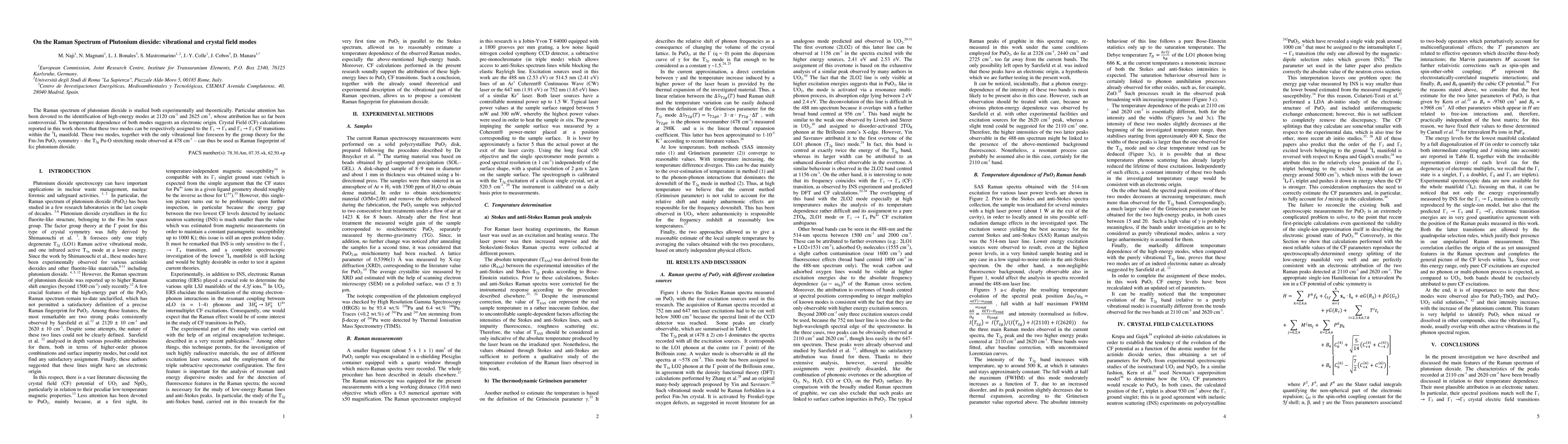 This paper investigates the Raman spectrum of plutonium dioxide, identifying high-energy vibrational modes at $2120$ cm$^{-1}$ and $2625$ cm$^{-1}$ through experimental and theoretical analysis. The modes are attributed to crystal field transitions within the $^{5}I_{4}$ manifold, providing a Raman fingerprint for fcc plutonium dioxide.