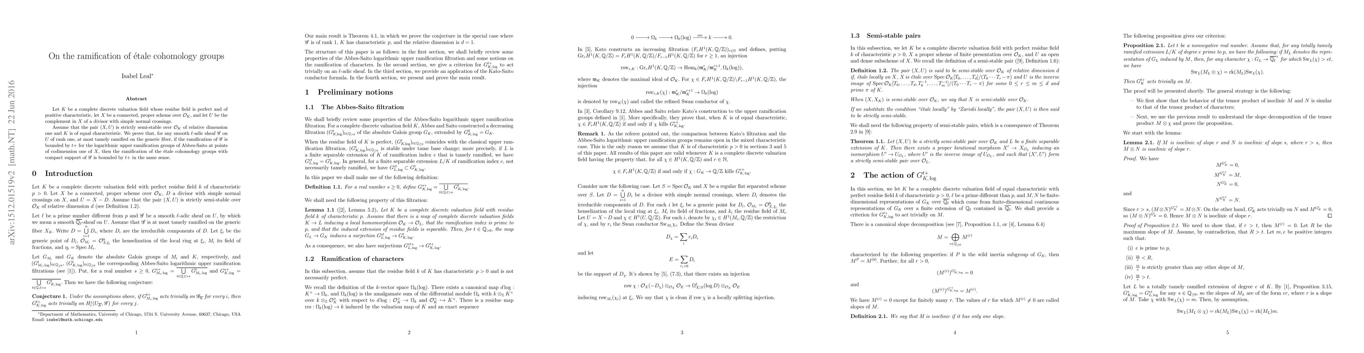 Let $K$ be a complete discrete valuation field whose residue field is perfect and of positive characteristic, let $X$ be a connected, proper scheme over $\mathcal{O}_K$, and let $U$ be the complement in $X$ of a divisor with simple normal crossings. Assume that the pair $(X,U)$ is strictly semi-stable over $\mathcal{O}_K$ of relative dimension one and $K$ is of equal characteristic. We prove that, for any smooth $\ell$-adic sheaf $\mathscr{G}$ on $U$ of rank one, at most tamely ramified on the generic fiber, if the ramification of $\mathscr{G}$ is bounded by $t+$ for the logarithmic upper ramification groups of Abbes-Saito at points of codimension one of $X$, then the ramification of the \'{e}tale cohomology groups with compact support of $\mathscr{G}$ is bounded by $t+$ in the same sense.