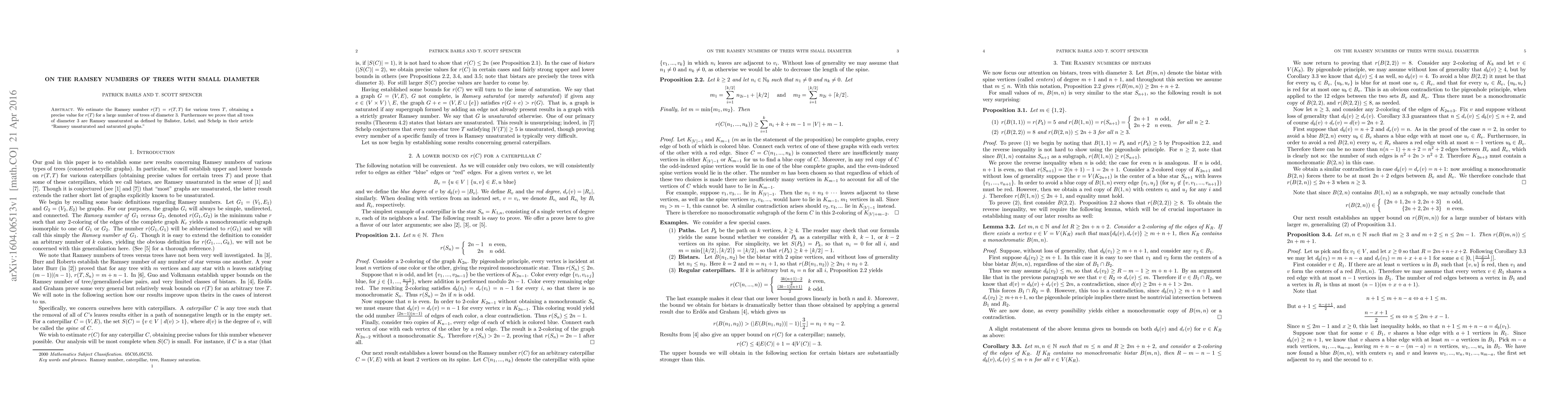 This paper estimates the Ramsey number r(T) for various trees T with diameter 3, finding precise values for many such trees. Additionally, it proves that all trees of diameter 3 are Ramsey unsaturated, as defined by Balister, Lehel, and Schelp.