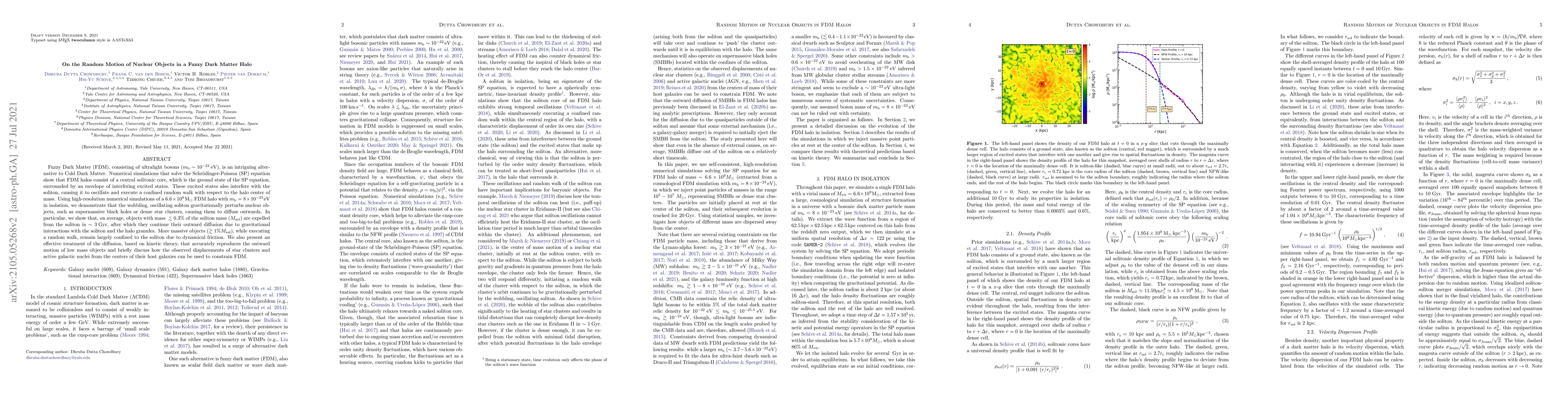 This paper investigates the random motion of nuclear objects within a Fuzzy Dark Matter (FDM) halo, showing that the oscillating soliton core causes low-mass objects to diffuse outwards over billions of years, while more massive objects remain confined due to dynamical friction. The study uses high-resolution simulations to demonstrate these effects and proposes a kinetic theory approach to model the diffusion process.