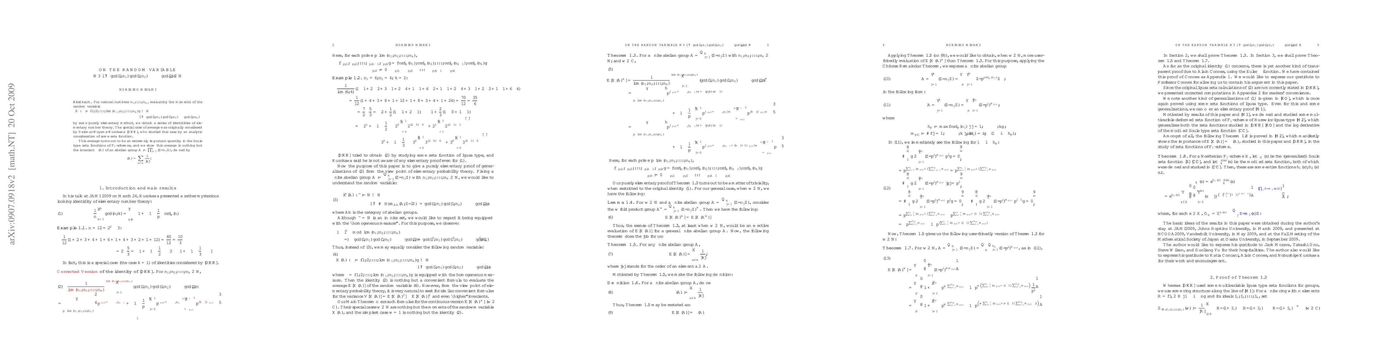 We compute the "moments" and its continuous analogue of the random variable $\N \ni l \mapsto \gcd(l,n_1) \gcd(l, n_2) ... \gcd(l, n_k) \in \N$ by a purely elementary method. This generalizes a result of Deitmar-Koyama-Kurokawa, which computed its "average" using some analysis involving L-function. We show this average is nothing but the invariant $\mu(A) := \sum_{a\in A} \frac{1}{| a |}$ for a finite abelian group $A = \prod_{j=1)^k Z/n_j$. In ArXiv-0910.3879v1, this invariant plays an important role in the Soul\'e type zeta functions for Noetherian $F_1$-schemes in the sense of Connes-Consani.