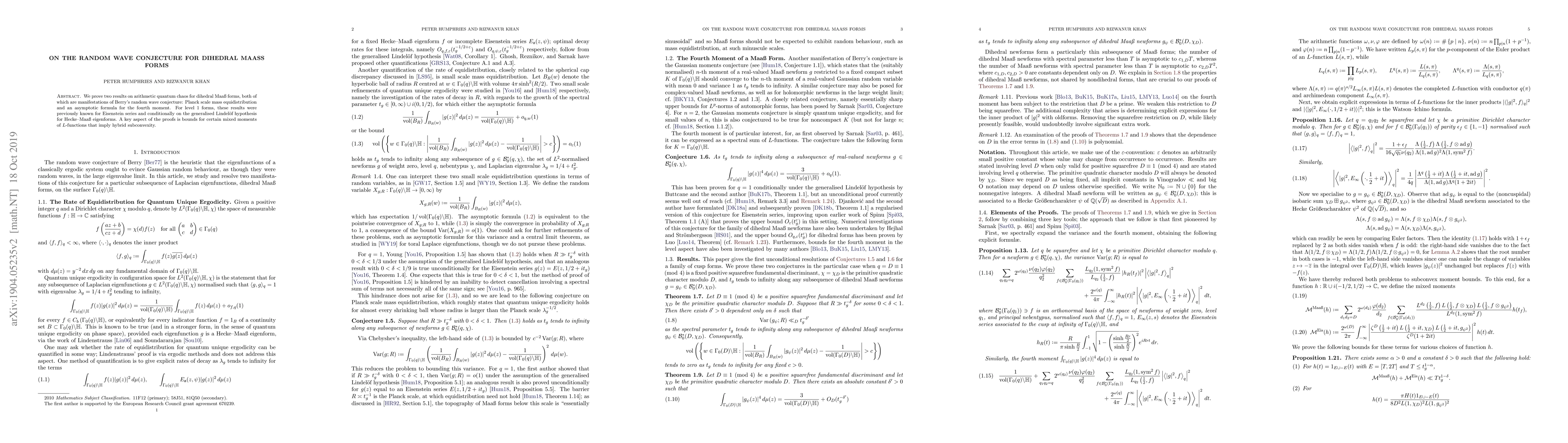 This paper proves two results supporting Berry's random wave conjecture for dihedral Maass forms, showing Planck scale mass equidistribution and an asymptotic formula for the fourth moment. The proofs rely on hybrid subconvexity bounds for mixed moments of $L$-functions.