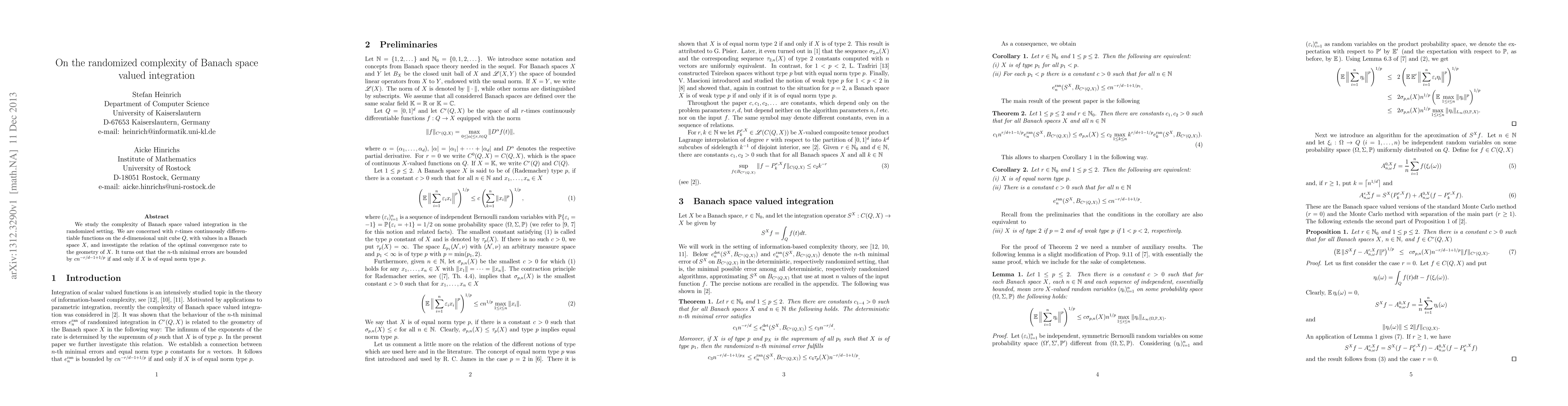This paper explores the randomized complexity of integrating $r$-times continuously differentiable functions on the $d$-dimensional unit cube, with values in a Banach space $X$. It finds that the optimal convergence rate depends on the norm type $p$ of $X$, with minimal errors bounded by $cn^{-r/d-1+1/p}$ if $X$ has equal norm type $p$.