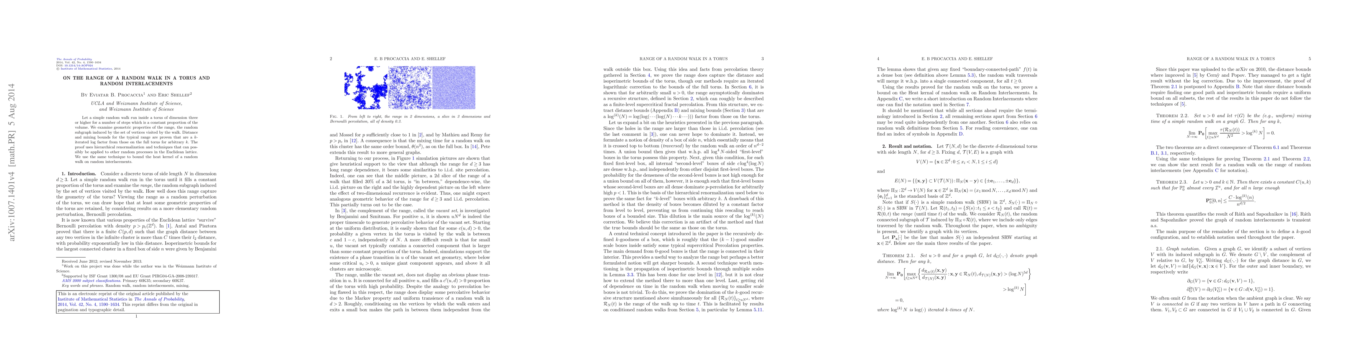 Let a simple random walk run inside a torus of dimension three or higher for a number of steps which is a constant proportion of the volume. We examine geometric properties of the range, the random subgraph induced by the set of vertices visited by the walk. Distance and mixing bounds for the typical range are proven that are a $k$-iterated log factor from those on the full torus for arbitrary $k$. The proof uses hierarchical renormalization and techniques that can possibly be applied to other random processes in the Euclidean lattice. We use the same technique to bound the heat kernel of a random walk on random interlacements.