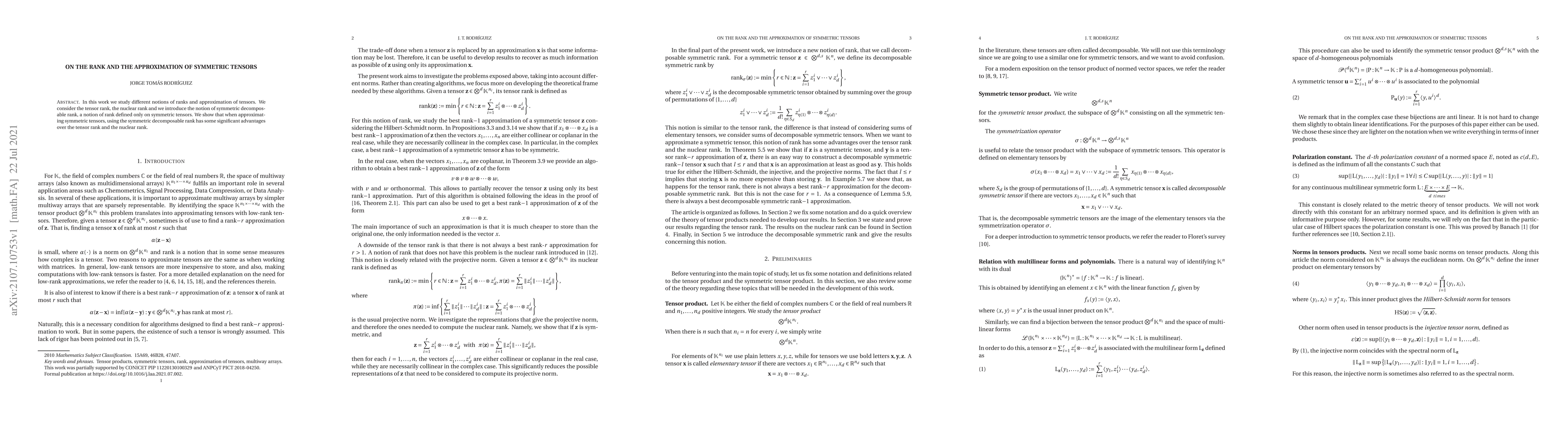 This paper explores various ranks and approximations for tensors, particularly focusing on symmetric tensors. It introduces the symmetric decomposable rank and demonstrates its advantages over traditional tensor rank and nuclear rank in approximating symmetric tensors.