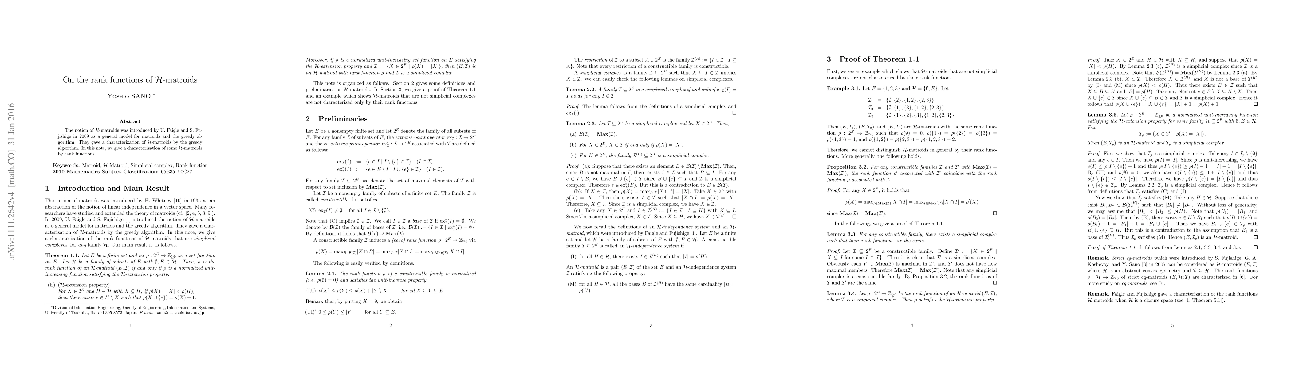 This paper characterizes certain $\mathcal{H}$-matroids introduced by Faigle and Fujishige in 2009 using rank functions, expanding on their original characterization via the greedy algorithm.