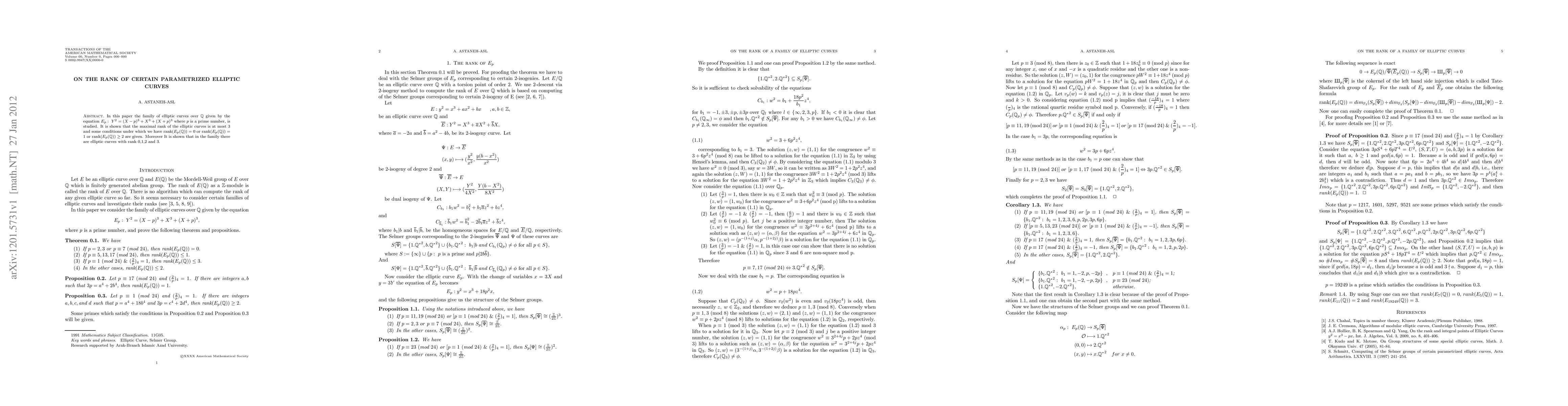 This paper investigates the family of elliptic curves defined by E_{p}: Y^2=(X-p)^3+X^3+(X+p)^3 for prime p, showing that their maximal rank is at most 3, and identifies conditions for specific ranks, including instances of rank 0, 1, 2, and 3.
