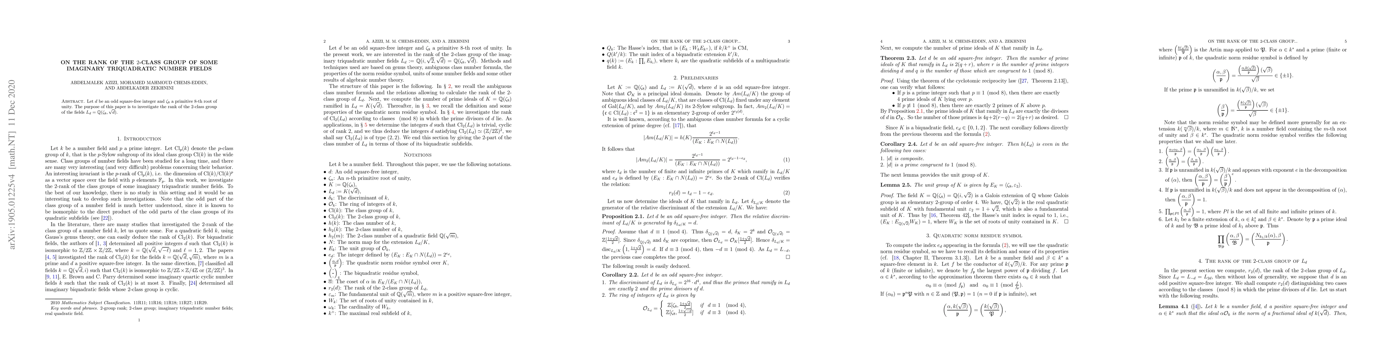This paper investigates the rank of the 2-class group of imaginary triquadratic number fields, focusing on a specific field L_d defined by d, an odd square-free integer.