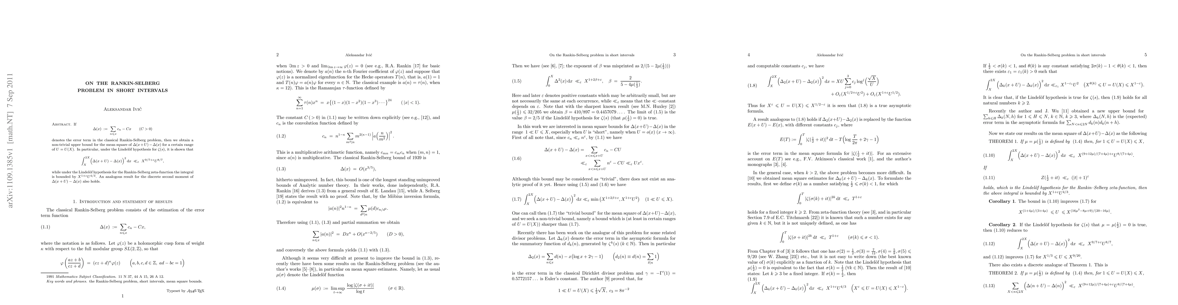 If $$ \Delta(x) \;:=\; \sum_{n\leqslant x}c_n - Cx\qquad(C>0) $$ denotes the error term in the classical Rankin-Selberg problem, then we obtain a non-trivial upper bound for the mean square of $\Delta(x+U) - \Delta(x)$ for a certain range of $U = U(X)$. In particular, under the Lindel\"of hypothesis for $\zeta(s)$, it is shown that $$ \int_X^{2X} \Bigl(\Delta(x+U)-\Delta(x)\Bigr)^2\,{\roman d} x \;\ll_\epsilon\; X^{9/7+\epsilon}U^{8/7}, $$ while under the Lindel\"of hypothesis for the Rankin-Selberg zeta-function the integral is bounded by $X^{1+\epsilon}U^{4/3}$. An analogous result for the discrete second moment of $\Delta(x+U)-\Delta(x)$ also holds.