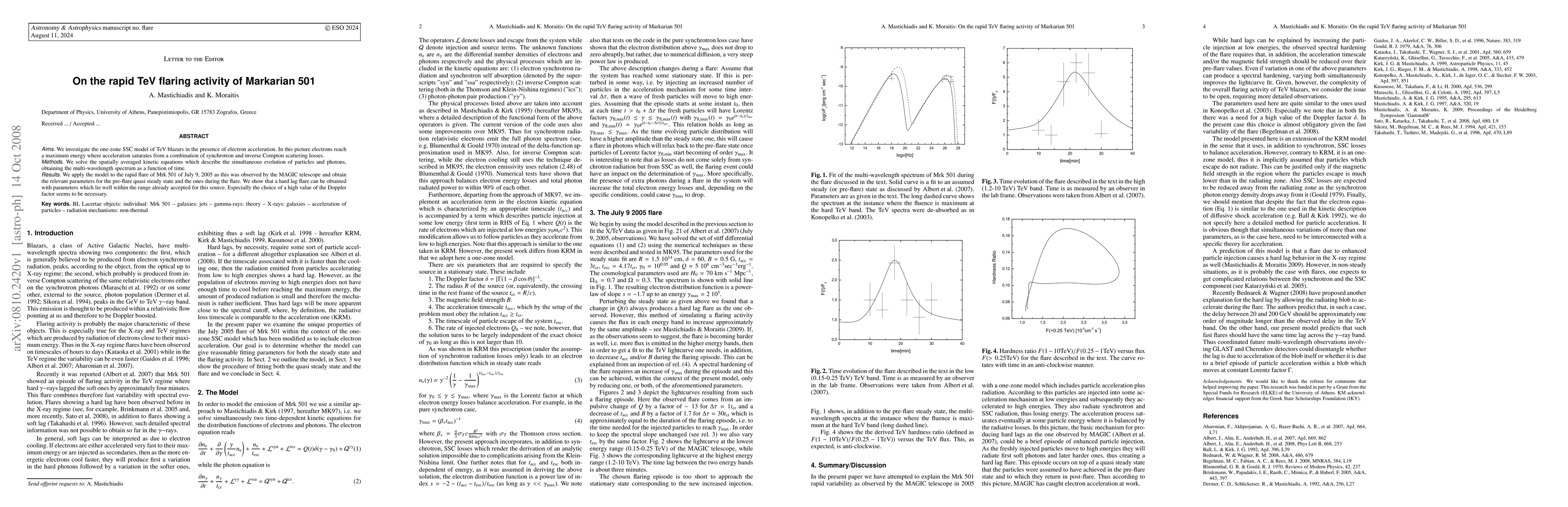 Aims: We investigate the one-zone SSC model of TeV blazars in the presence of electron acceleration. In this picture electrons reach a maximum energy where acceleration saturates from a combination of synchrotron and inverse Compton scattering losses. Methods: We solve the spatially averaged kinetic equations which describe the simultaneous evolution of particles and photons, obtaining the multi-wavelength spectrum as a function of time. Results: We apply the model to the rapid flare of Mrk 501 of July 9, 2005 as this was observed by the MAGIC telescope and obtain the relevant parameters for the pre-flare quasi steady state and the ones during the flare. We show that a hard lag flare can be obtained with parameters which lie well within the range already accepted for this source. Especially the choice of a high value of the Doppler factor seems to be necessary.