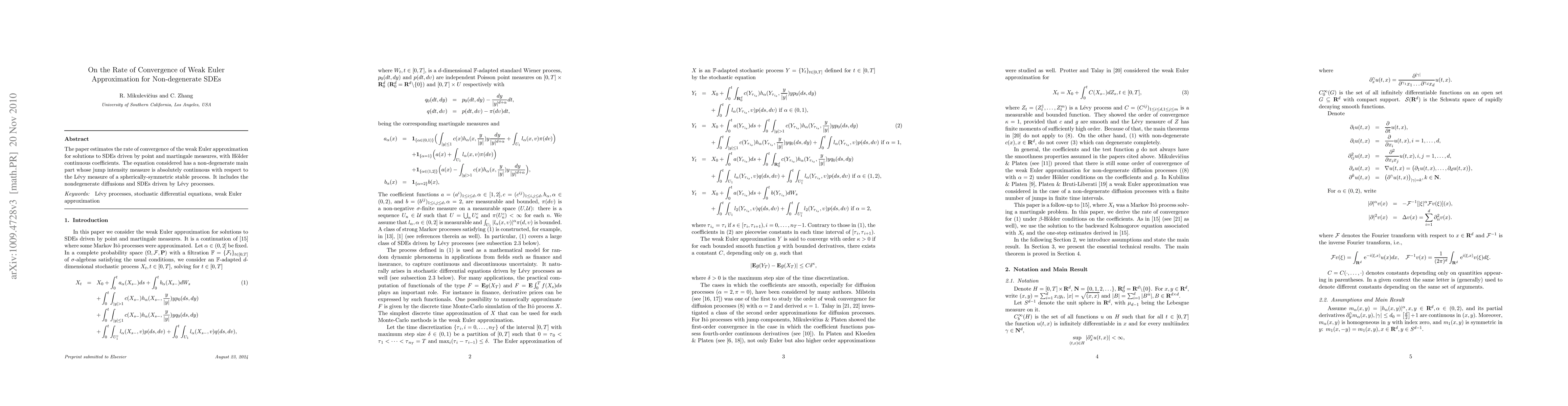 The paper estimates the rate of convergence of the weak Euler approximation for solutions of non-degenerate SDEs with Hölder continuous coefficients driven by point and martingale measures, focusing on equations with a non-degenerate main part driven by a spherically-symmetric stable process.