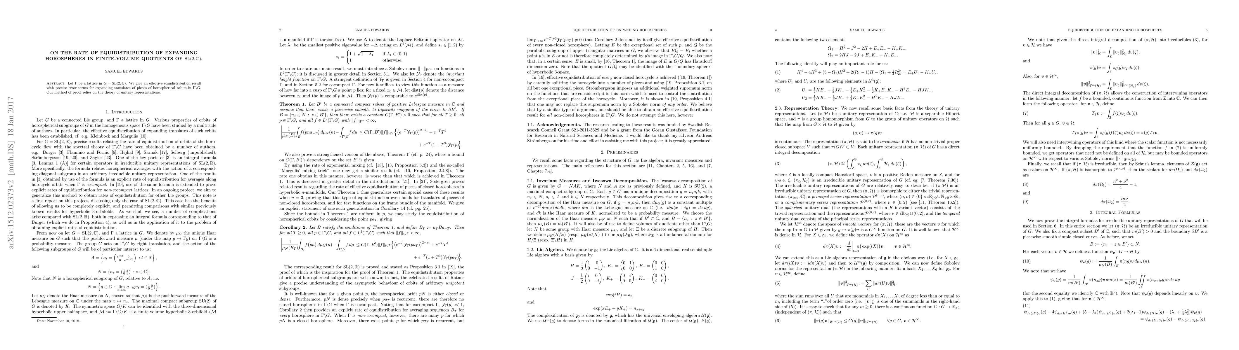 This paper presents an effective equidistribution result with precise error terms for expanding horospheres in finite-volume quotients of $\mathrm{SL}(2,\mathbb{C})$, utilizing the theory of unitary representations to achieve its proof.