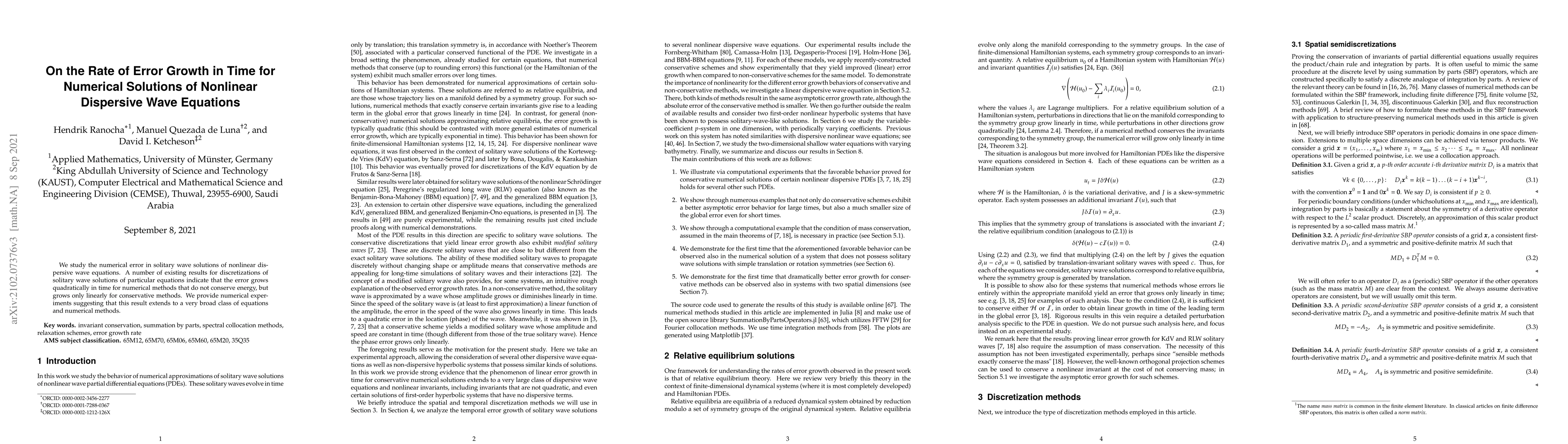 This paper investigates numerical errors in solitary wave solutions of nonlinear dispersive wave equations, demonstrating that non-conservative methods lead to quadratic error growth over time, whereas conservative methods result in linear error growth. Numerical experiments support the generalization of these findings across a wide range of equations and methods.