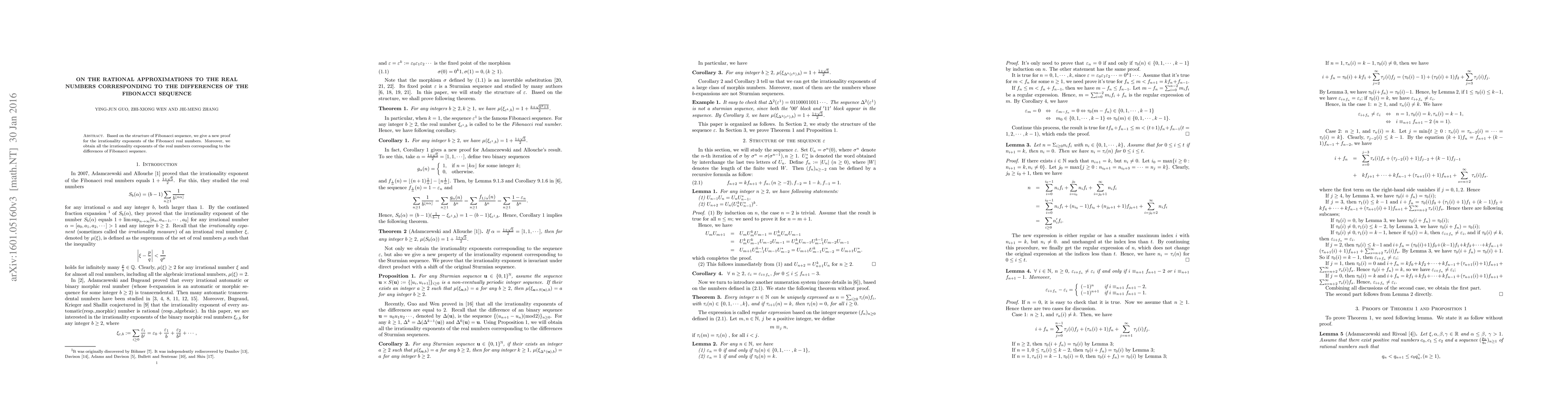 Summary: This paper provides a new proof for the irrationality exponents of Fibonacci real numbers and determines all irrationality exponents for real numbers derived from the differences in the Fibonacci sequence, leveraging the sequence's inherent structure.