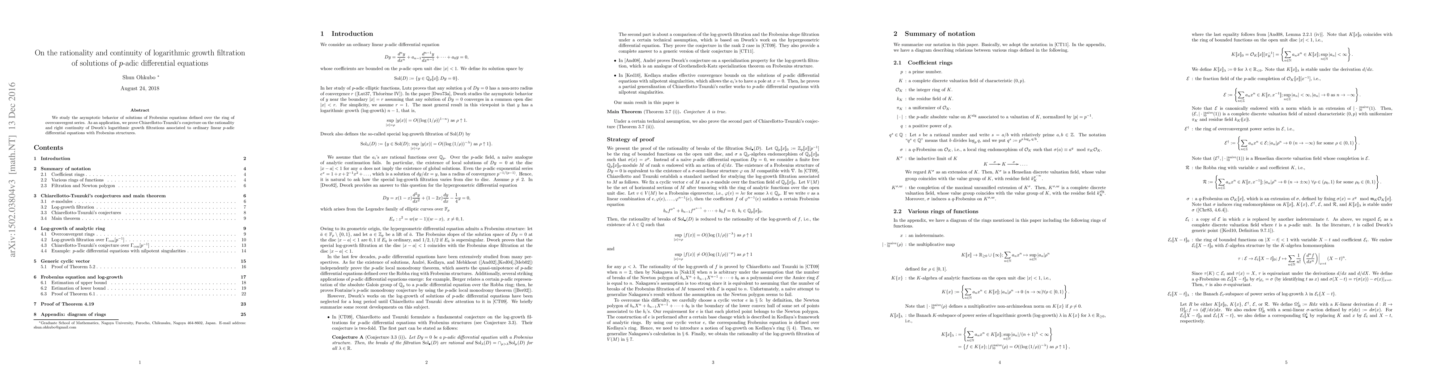 This paper investigates the asymptotic behavior of solutions to Frobenius equations over the ring of overconvergent series, proving Chiaralotto-Tsuzuki's conjecture regarding the rationality and right continuity of Dwork's logarithmic growth filtrations for ordinary linear $p$-adic differential equations.
