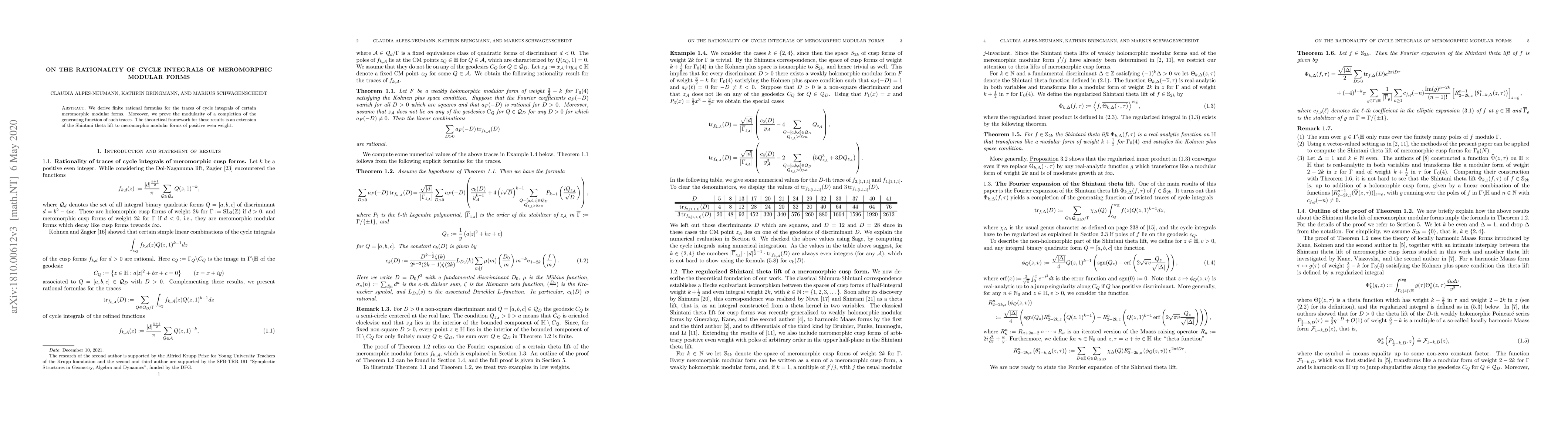 Summary: This research develops rational formulas for cycle integrals of specific meromorphic modular forms and demonstrates their modularity through an extended Shintani theta lift framework. The findings complete the generating function of these traces.