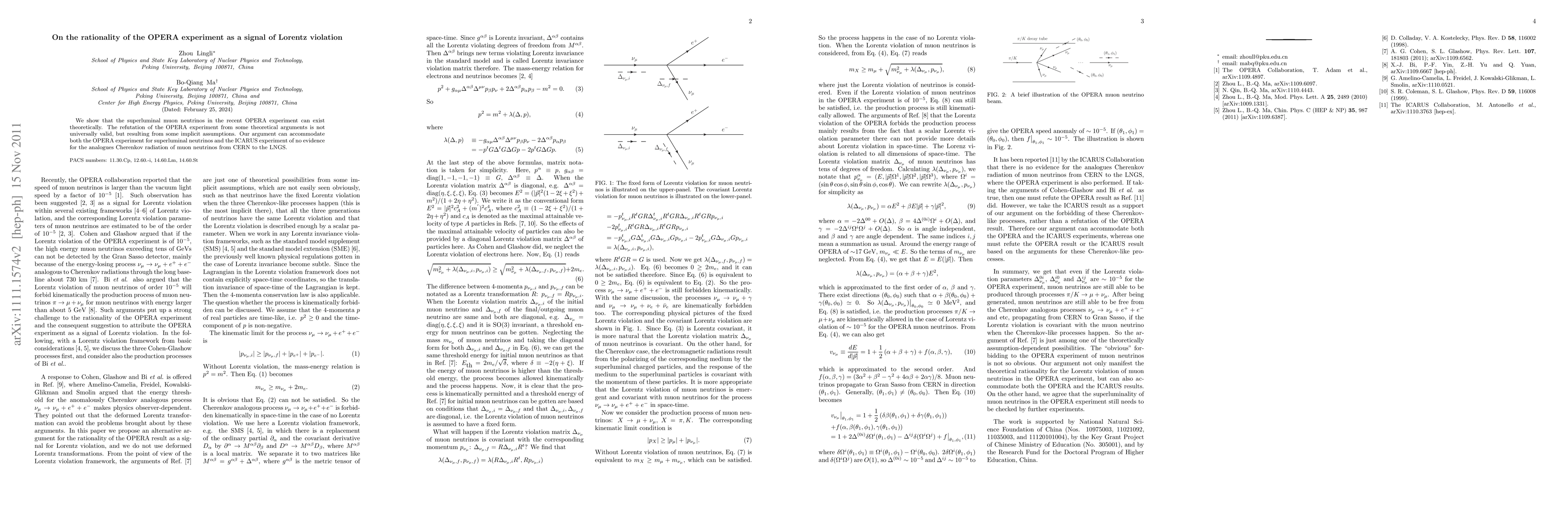 We show that the superluminal muon neutrinos in the recent OPERA experiment can exist theoretically. The refutation of the OPERA experiment from some theoretical arguments is not universally valid, but resulting from some implicit assumptions. Our argument can accommodate both the OPERA experiment for superluminal neutrinos and the ICARUS experiment of no evidence for the analogues Cherenkov radiation of muon neutrinos from CERN to the LNGS.