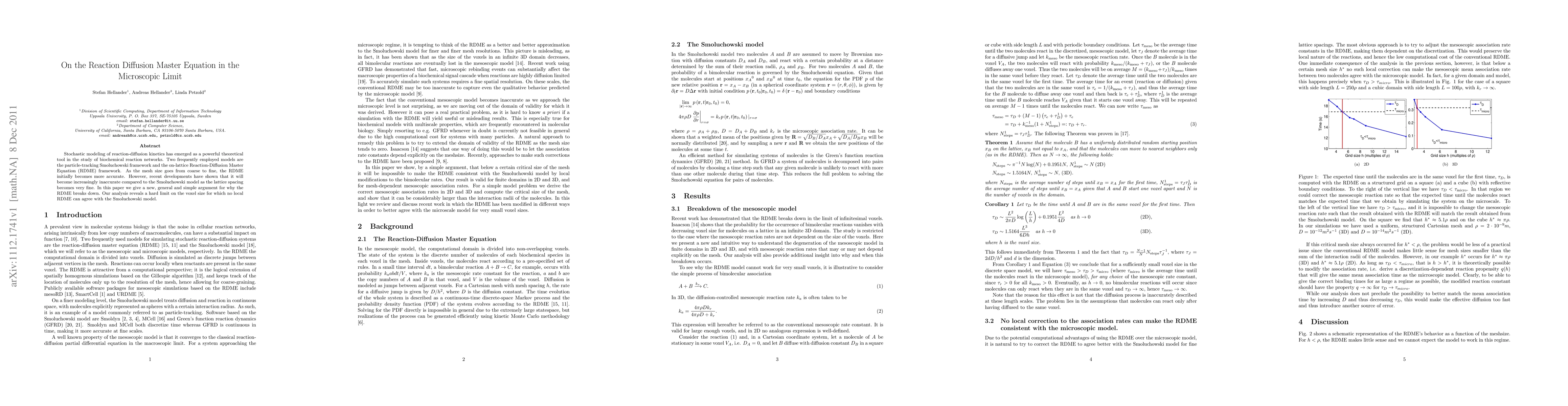 This paper investigates the limitations of the Reaction-Diffusion Master Equation (RDME) in the microscopic limit, demonstrating that it becomes increasingly inaccurate compared to the Smoluchowski model as the lattice spacing decreases. The authors provide a new argument revealing a hard limit on the voxel size for which the RDME cannot accurately represent the Smoluchowski model.